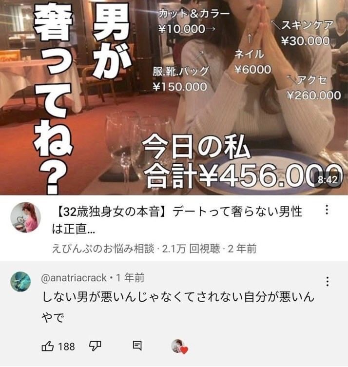 .と,の違いも分からないま●こに奢ろうと思うか?