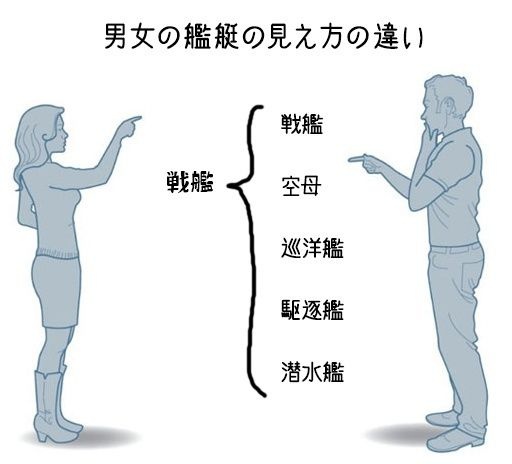 【内閣総辞職悲報】「男女の艦艇の見え方のちがい」を示した画像が話題にwww