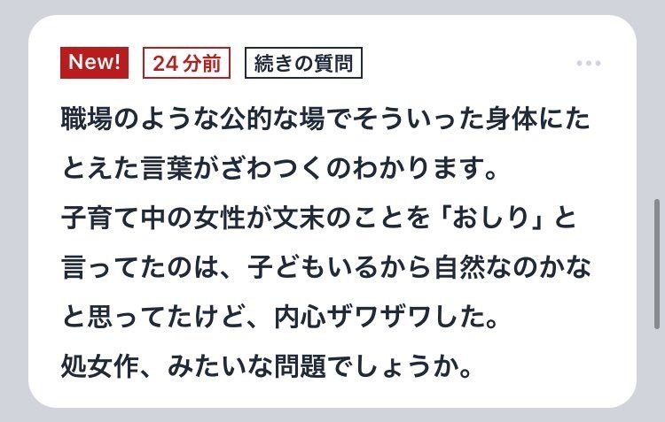 間接的なセクハラみたいに思うんかな - 239 名前:ここからは表現の自由でイカせていただきます 投稿日時:2025/12/07(日) 20:14:47.175 ID:vg/V1B3vs