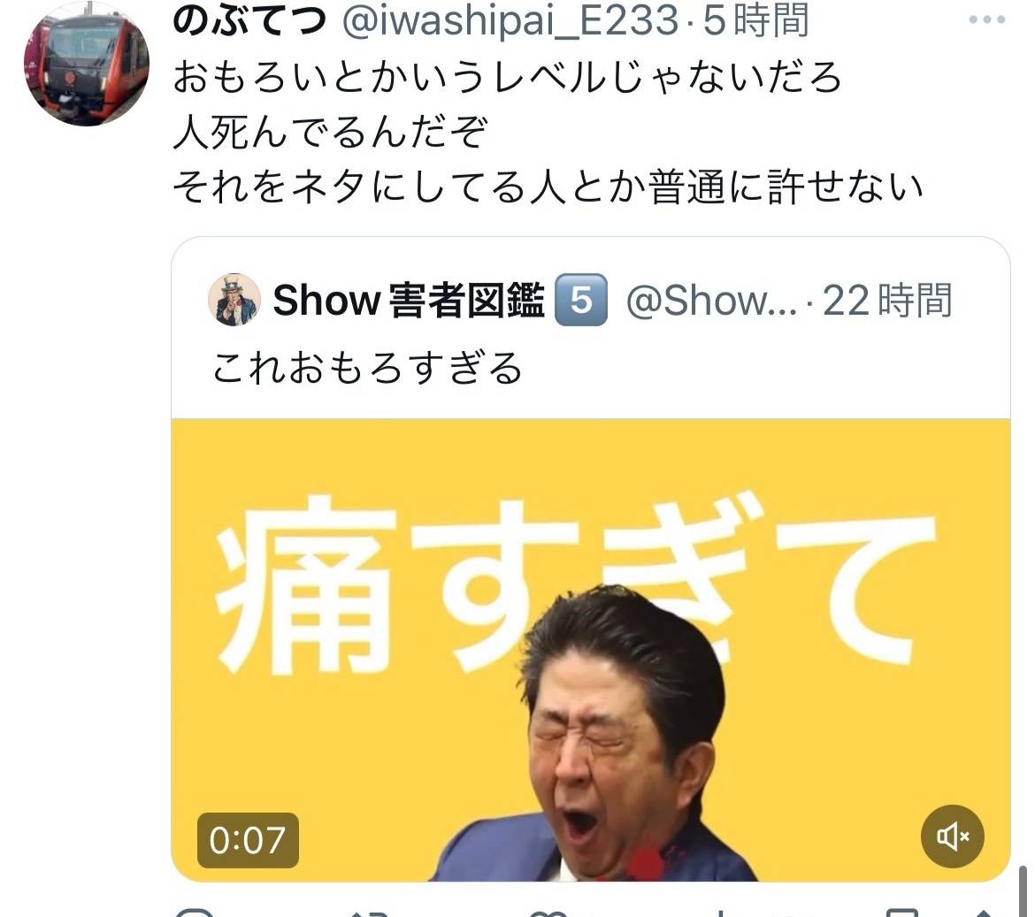 愛国者「安倍さんの死をイジるネタは不謹慎だし、死人を冒涜してる」→2万いいね