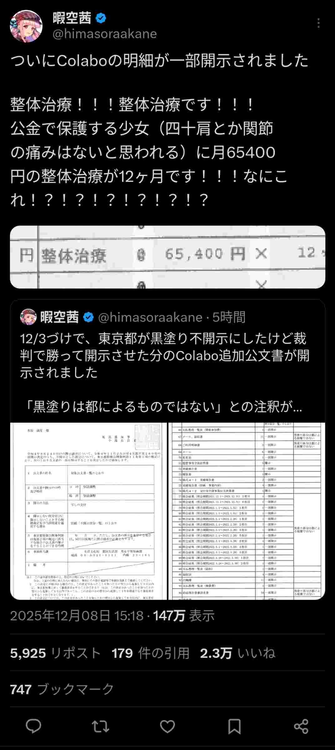 都から補助金を受けてる一般社団法人の公金の使途の適正化を監視・促進する行為が暇アノンなんか? - 44 名前:ここからは表現の自由でイカせていただきます 投稿日時:2025/12/09(火) 08:55:48.271 ID:TRsSCAgn5