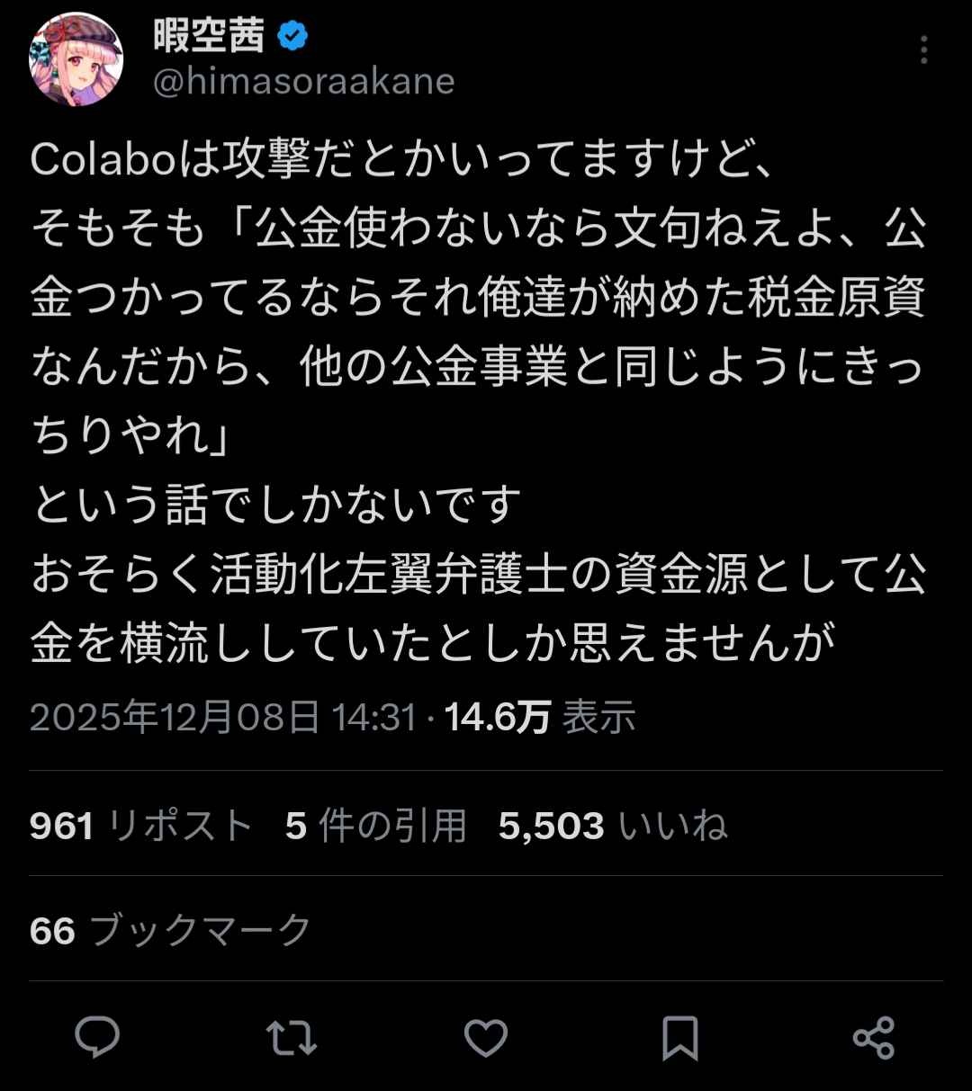Colaboさんにお願いしたら公金でやってもらえるんかな? - 32 名前:ここからは表現の自由でイカせていただきます 投稿日時:2025/12/09(火) 08:52:53.206 ID:VMZm/YGfA