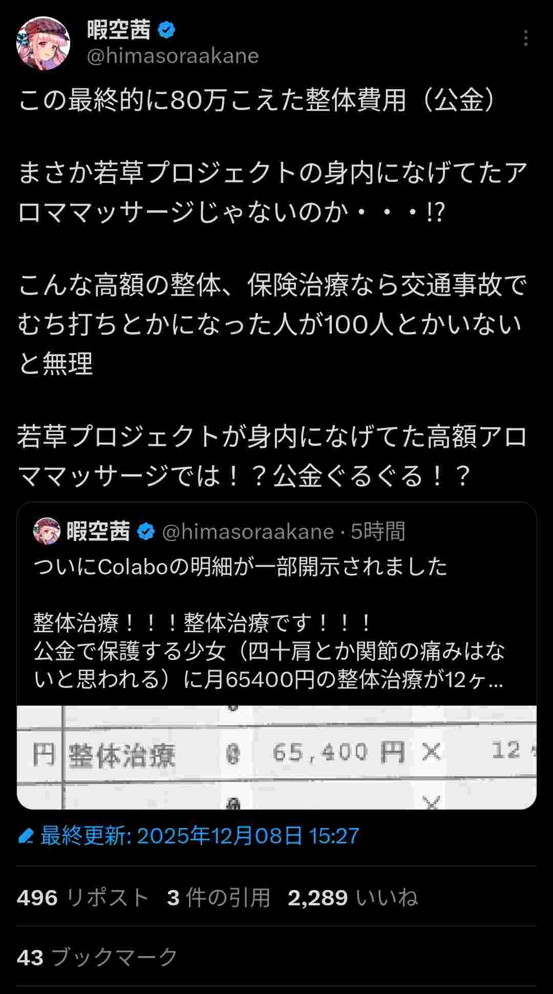 若草プロジェクトが身内になげてた高額アロママッサージでは!?公金ぐるぐる!?