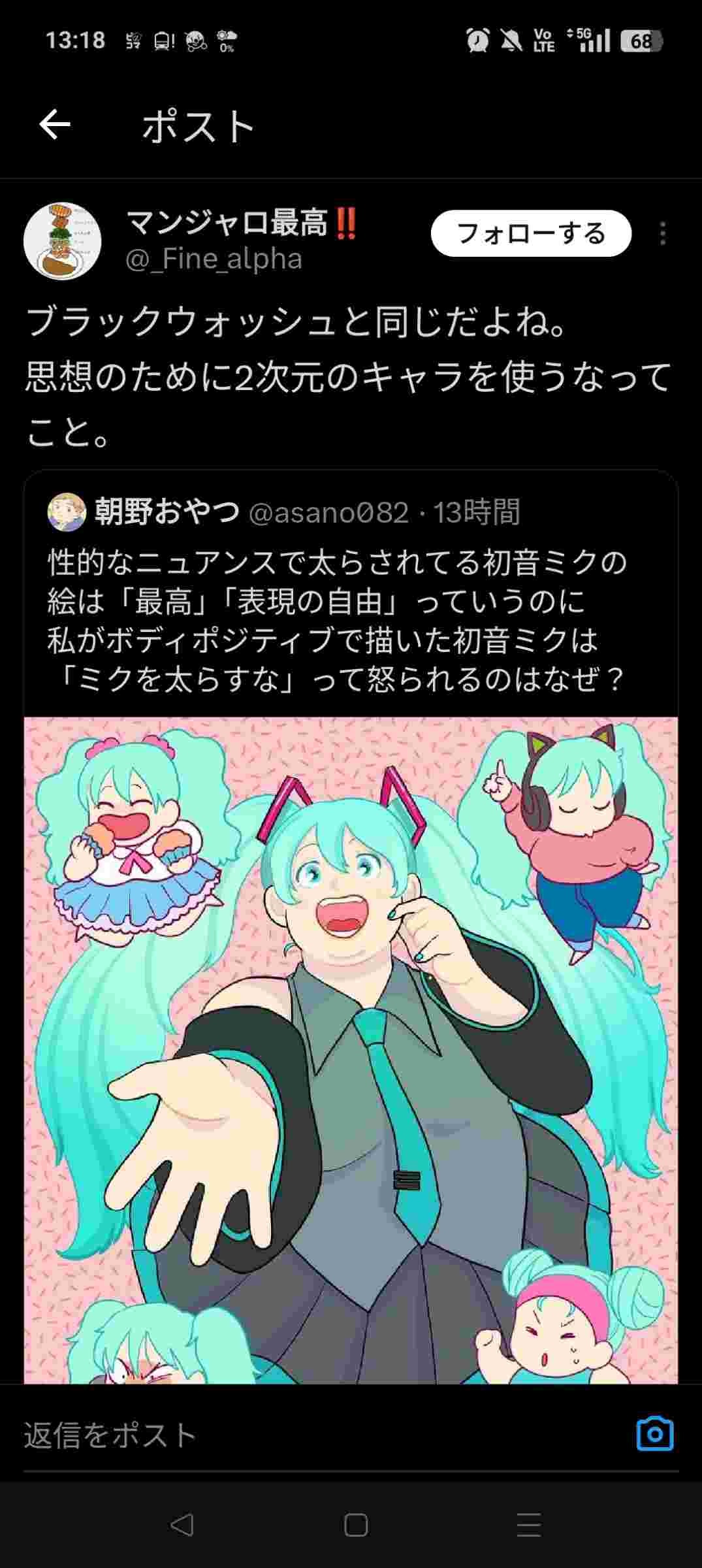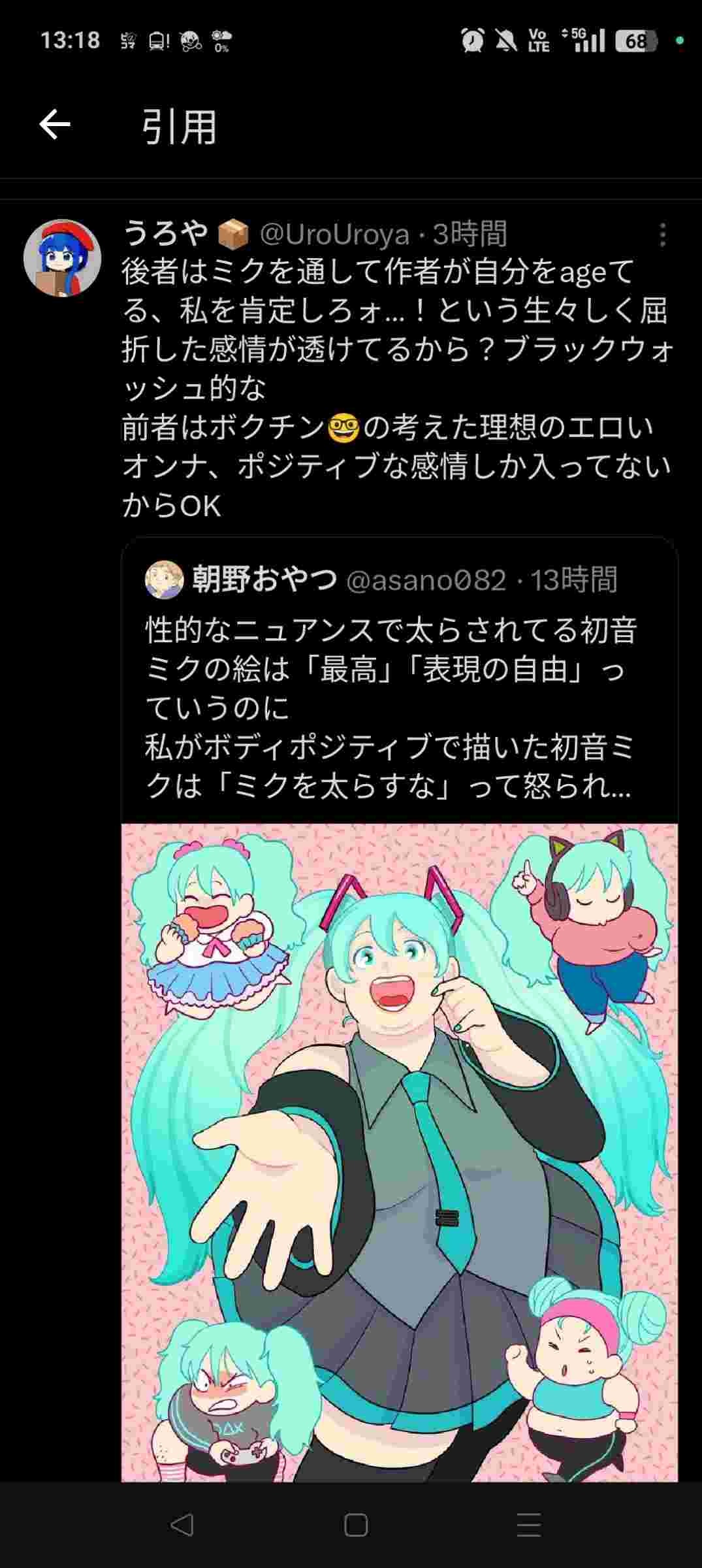 ミクは違うけど少年誌とかの本来健全な少年が見るべきマンガのキャラを脱衣させて性行為させて、分の裁量次第では腕や足引きちぎったり排泄,嘔吐させたり強姦されたり不倫行為したりしてもオタクは自分が抜ければ“原作リスペクト”だからな