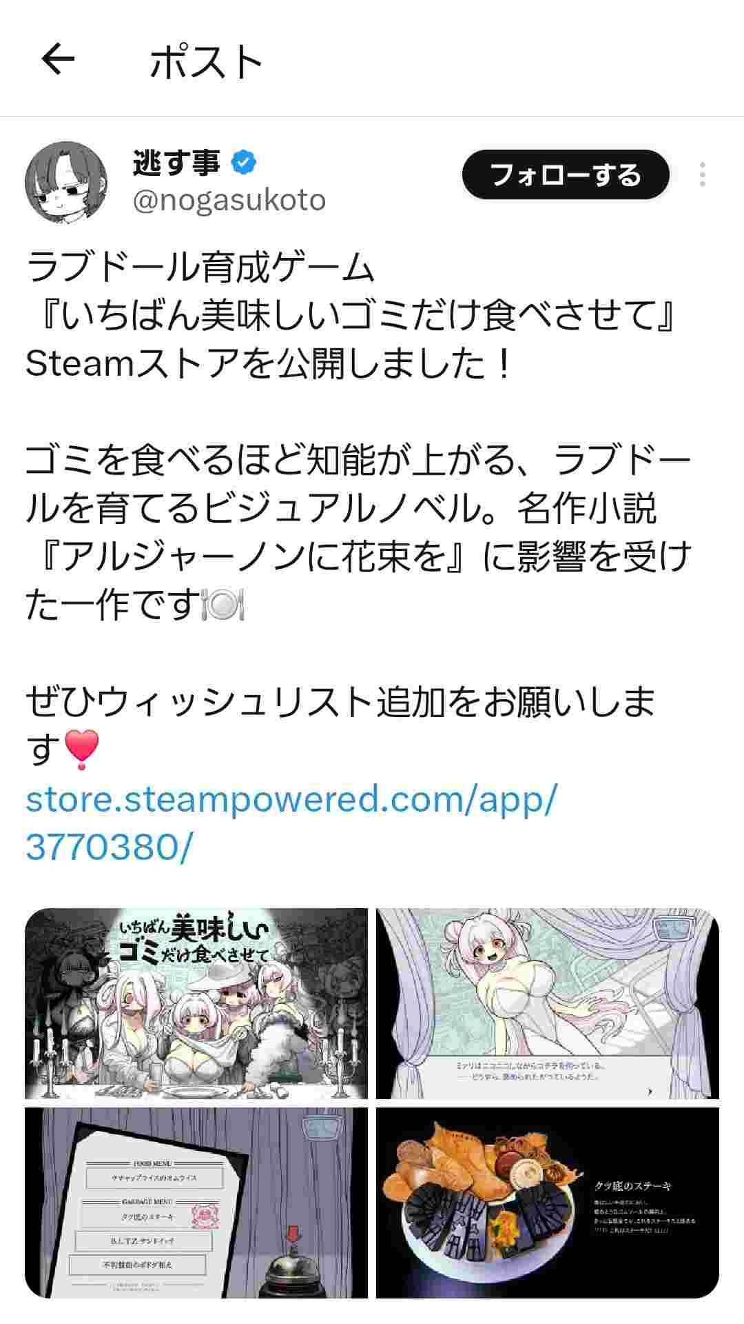ラブドールにゴミを食わせるゲーム→ターゲット層は男ではなくニディガやってたようなメンヘラ女やサブカル女