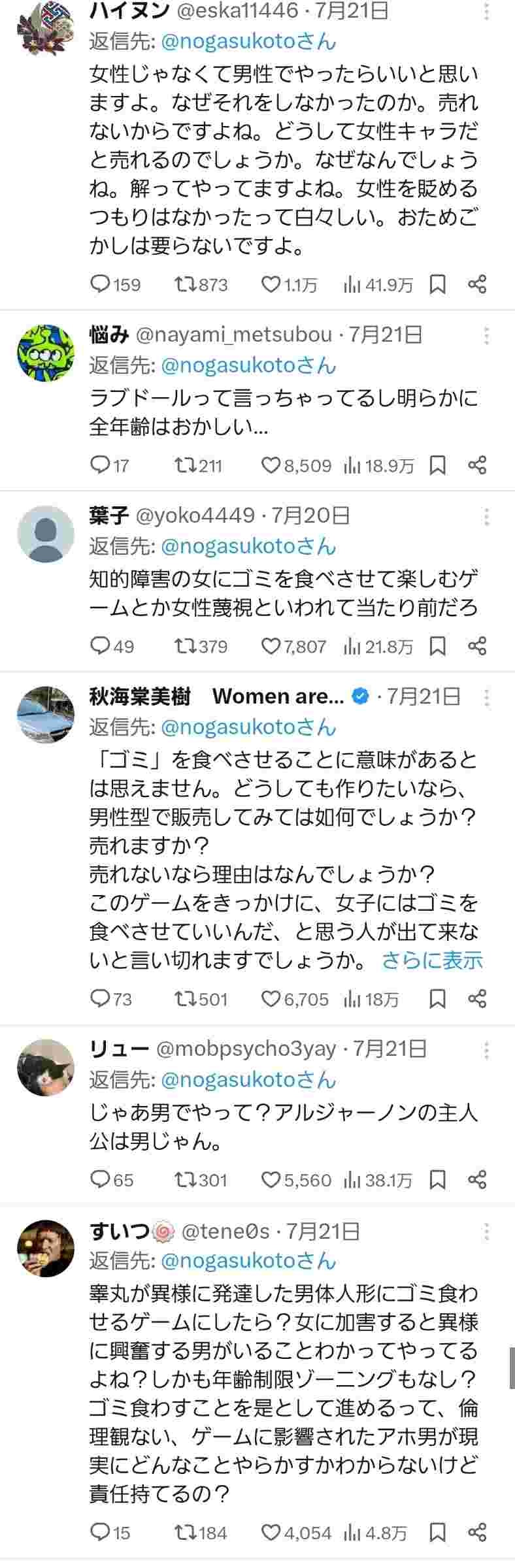 前に女の子にゴミを食べさせるゲームで世界中から叩かれたのに日本のゲーム開発者はそこまで性加害したいのか