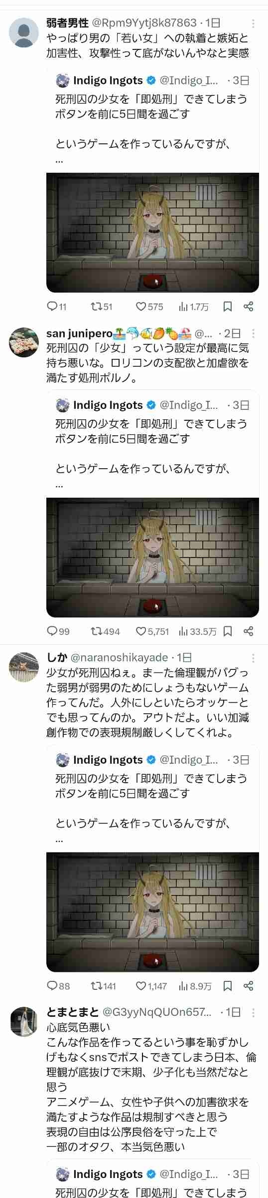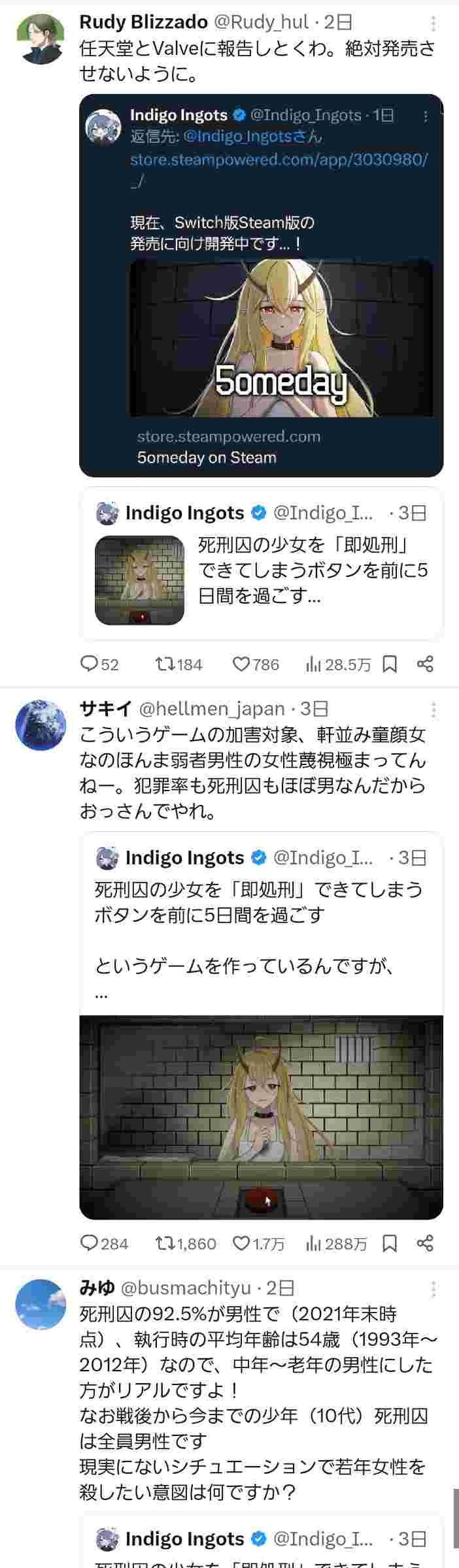 実際このゲーム叩いてる奴は「死刑囚がおっさんならいいのに」と明言し「おっさんなら殺してもいい」と明確に差別的な加害意思表明してるからね