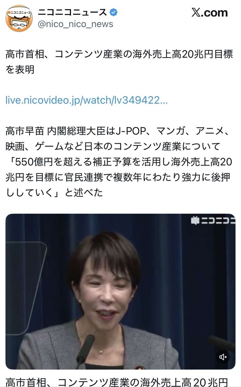 高市早苗「コンテンツ産業で20兆円稼ぐわよ!」www