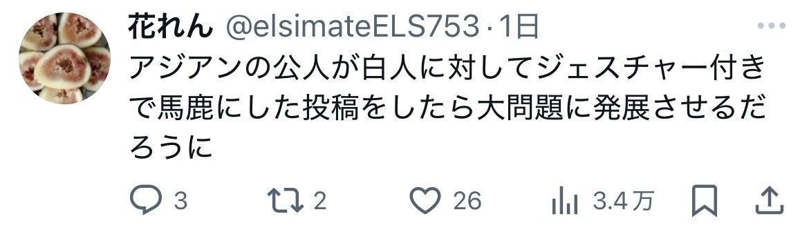 - 馬鹿な差別主義者が原因で馬鹿な差別主義者が乗っかって馬鹿な差別主義者が騒いでるだけだろこれ