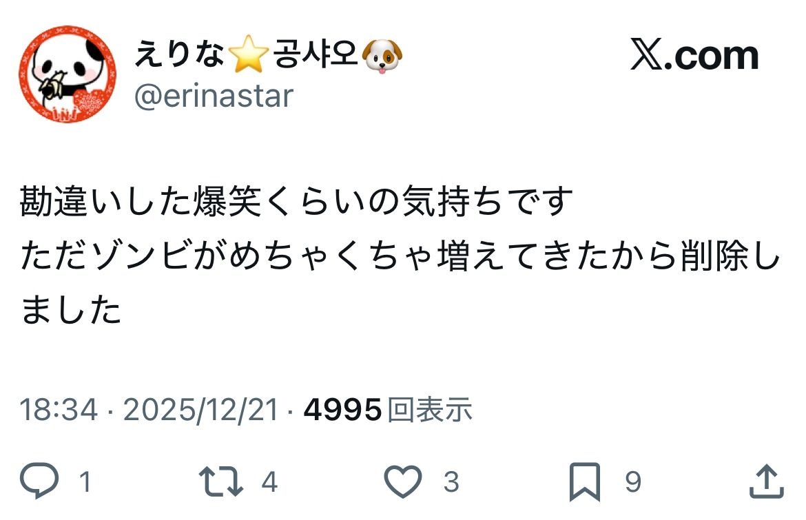 9 名前:ここからは表現の自由でイカせていただきます 投稿日時:2025/12/21(日) 18:57:37.391 ID:Yyq1A8DSM