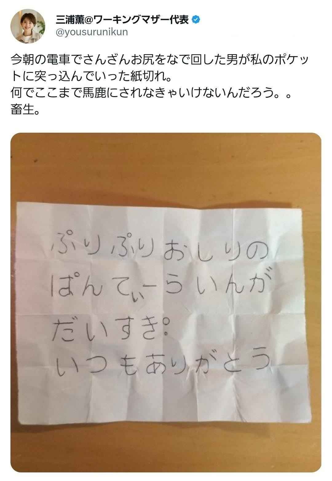 痴漢されたまんさん、メッセージをプレゼントされてしまう