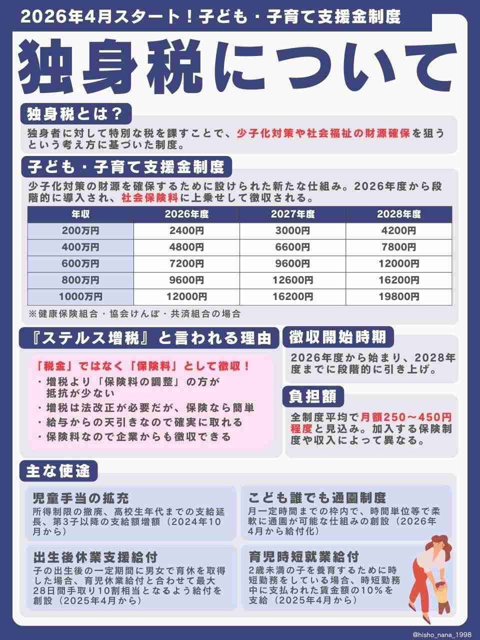 - 4月、“独身税”がいよいよ開始!子ども・子育て支援金制度「一人あたりの徴収料はいくら?」…「手取りが減った」という実感だけを持つ懸念