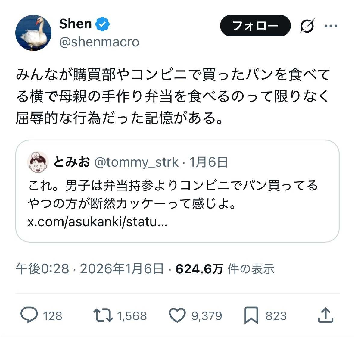 女は弁当を重視するけど、男は寧ろ手作り弁当は恥ずかしい事で、購買で雑に買う奴が一番かっこいい - 17 名前:ここからは表現の自由でイカせていただきます 投稿日時:2026/01/07(水) 22:52:39.933 ID:BW7D49qoz