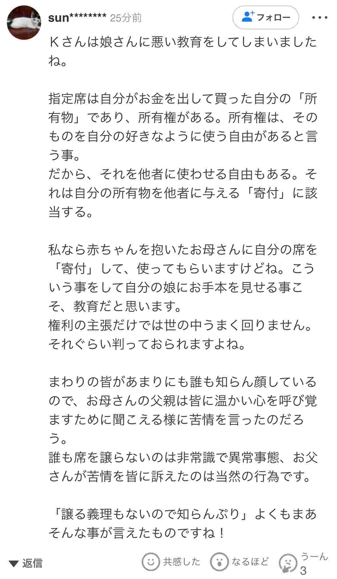 「指定席は購入者が対価を支払って得た権利です。善意による譲渡は美しい行為ですが、それを強要したり、譲らないことを非難したりすることは権利の侵害に当たります。特に未成年者に対して威圧的な言動を取ることは、極めて不適切です」