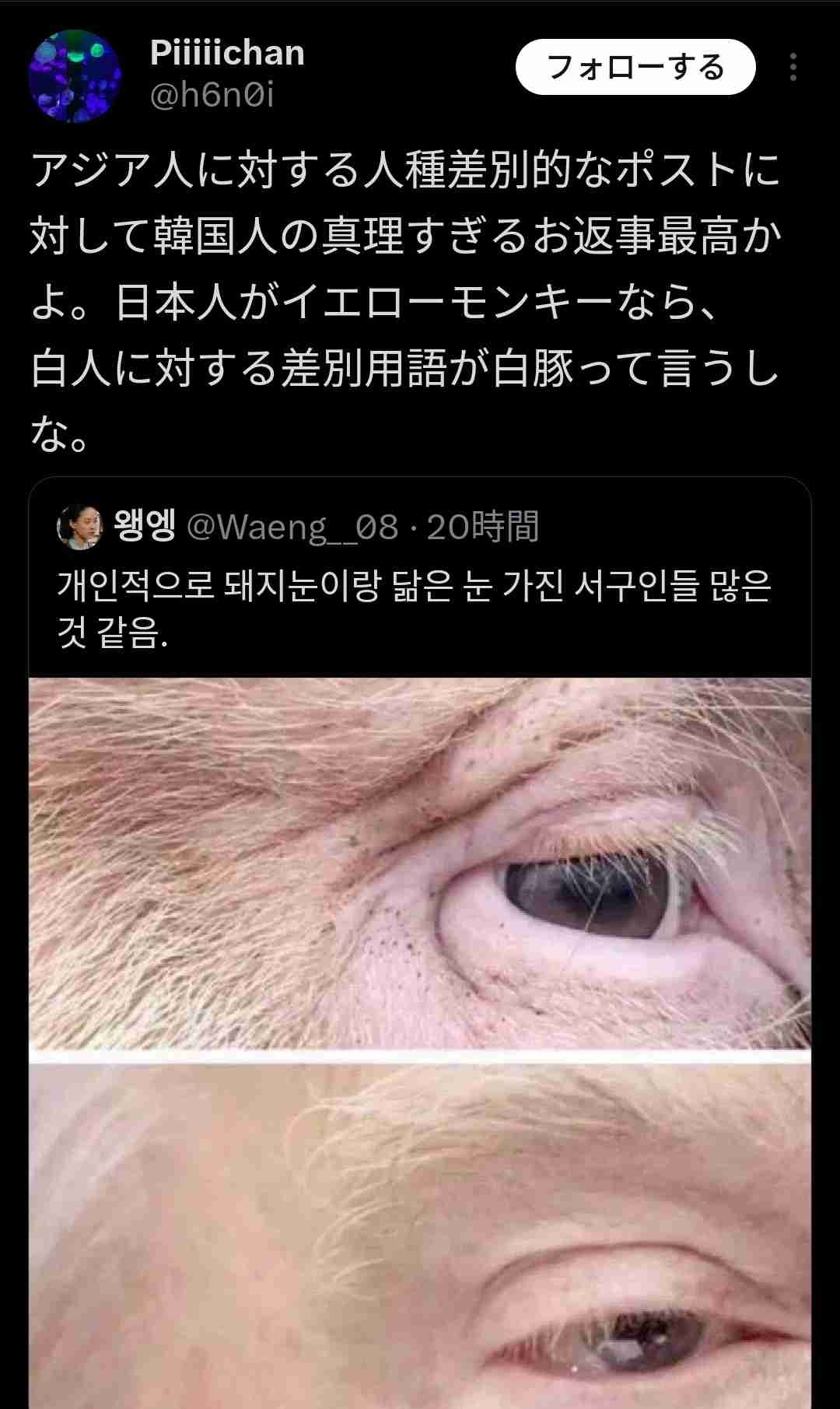 - アジア人が白人に差別されたら韓国人を叩くのが日本のお家芸やろ