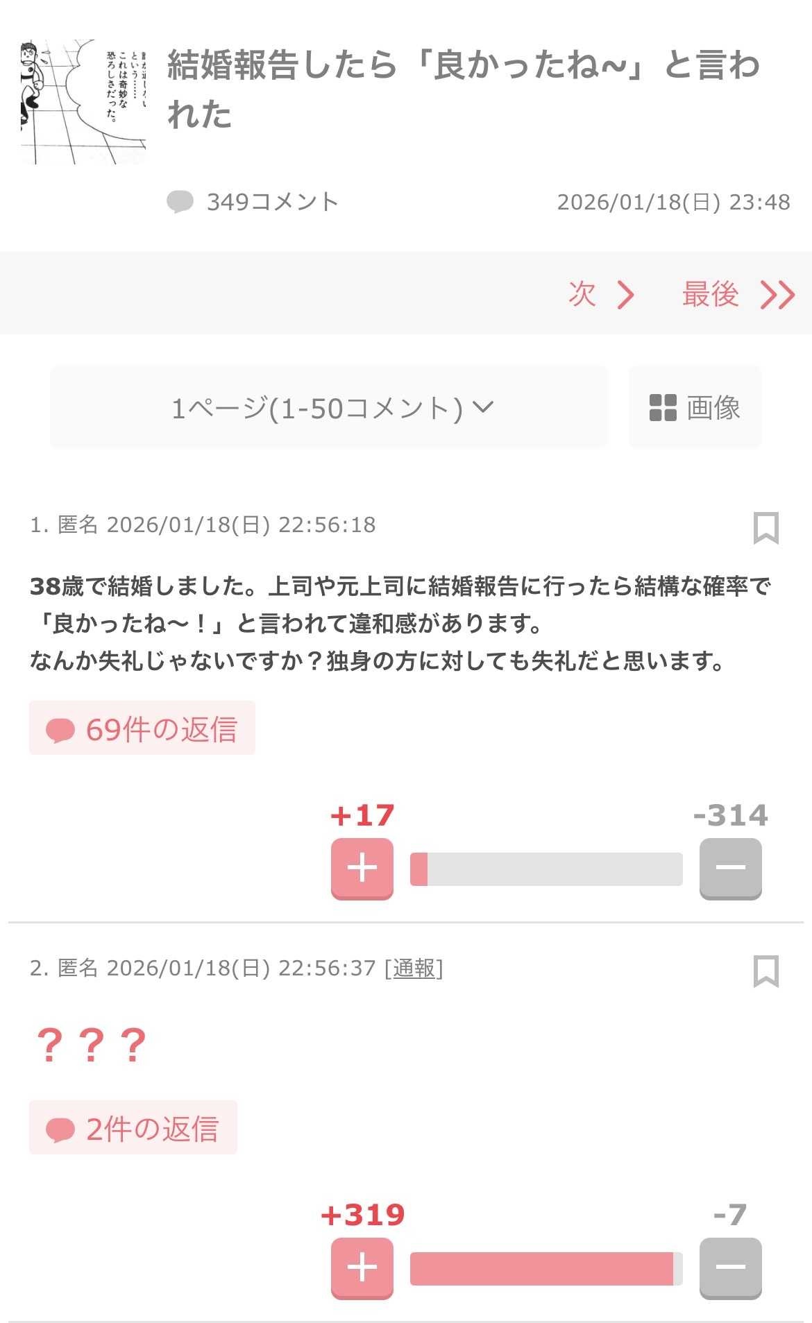 独身だとよくないみたいな言い方やん - 50 名前:ここからは表現の自由でイカせていただきます 投稿日時:2026/01/19(月) 00:11:51.268 ID:yVLcwtKR5