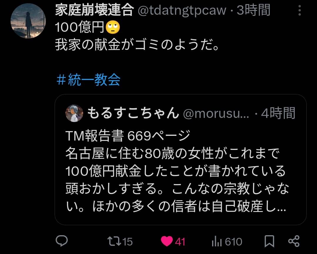 - 統一教会「いや100億はまずいですおばあちゃん…」