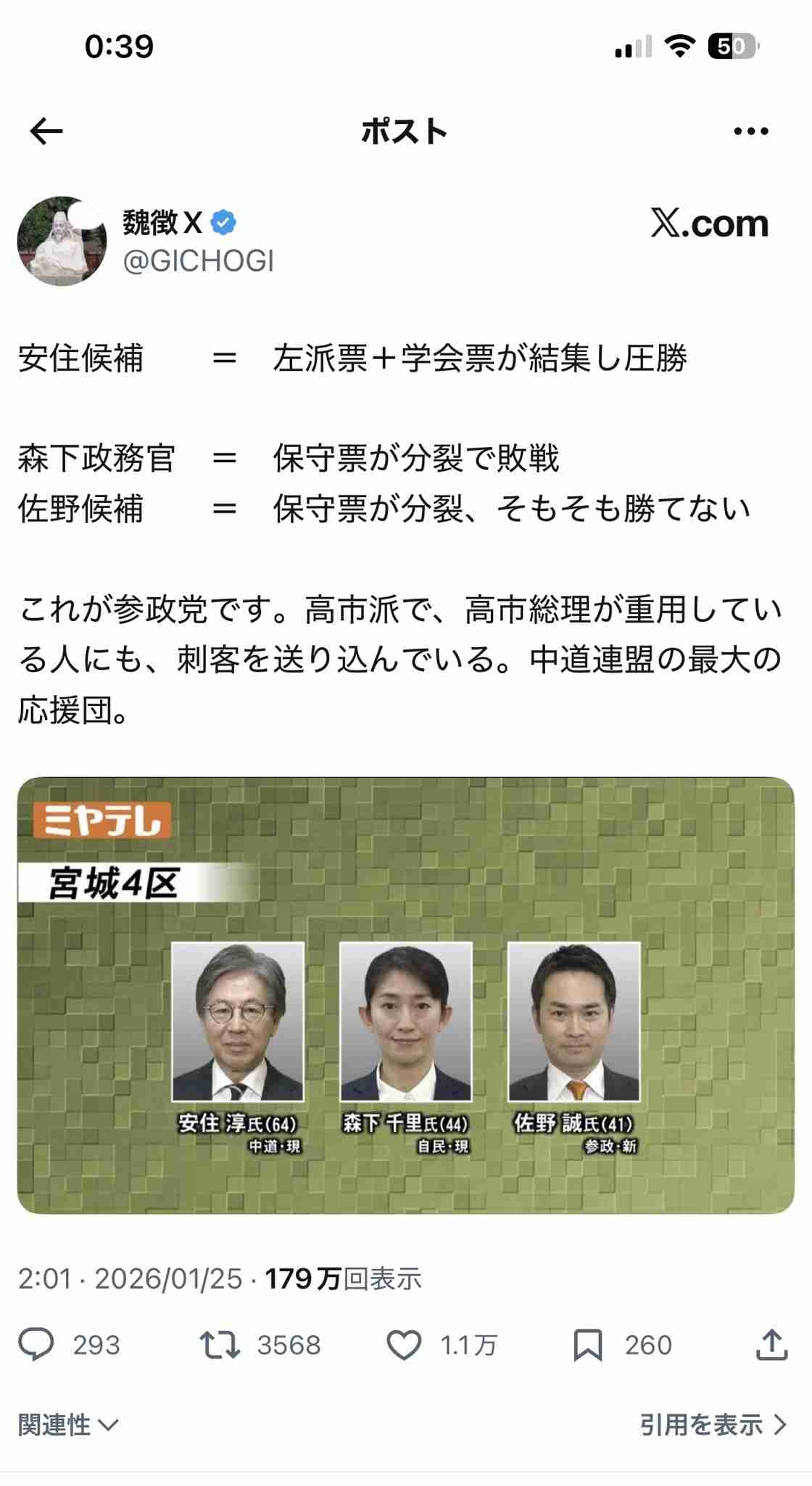 なぜか高市を応援してた候補者を厳重注意したら叩かれた模様 - 8 名前:ここからは表現の自由でイカせていただきます 投稿日時:2026/01/27(火) 00:29:56.164 ID:Sqaoak720