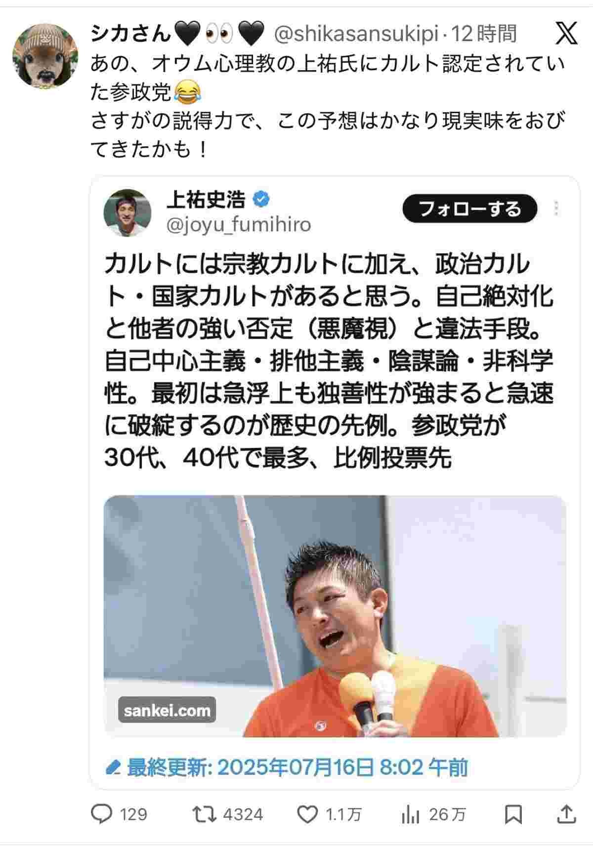 - 最近参政党批判のポストが万バズしてるのなんで😭