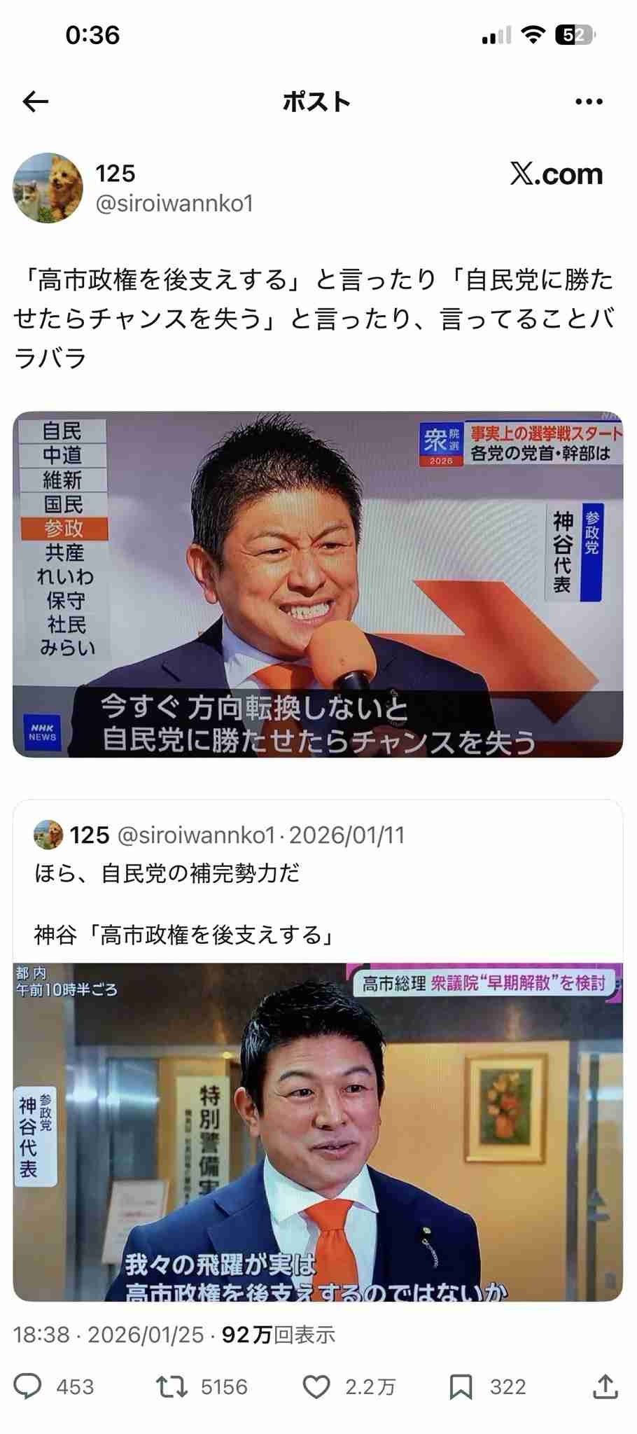 神谷宗幣【参政党】 @jinkamiya (2026/01/25 23:15:33)