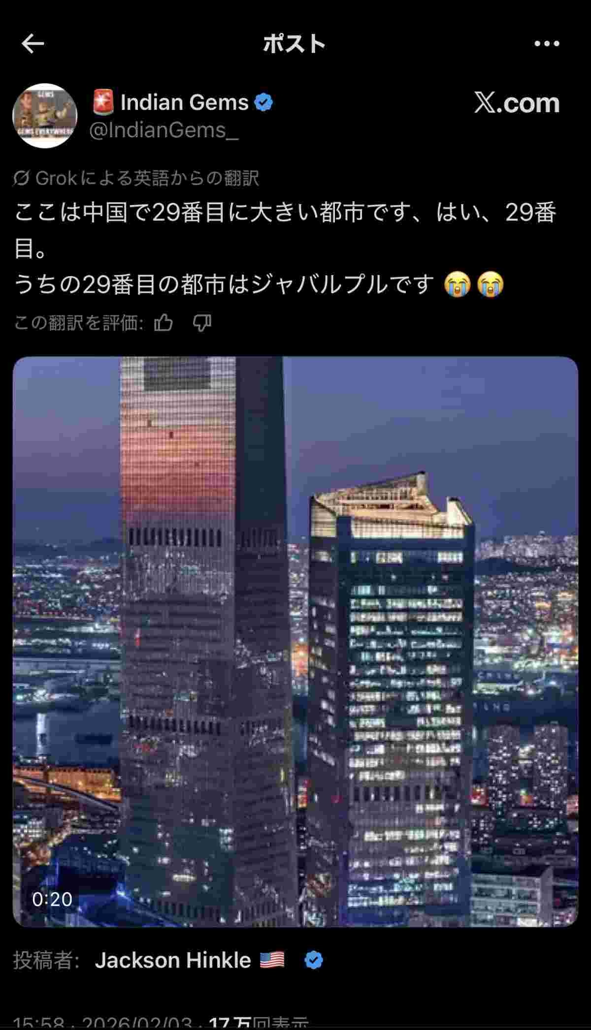 つーかこんな都会なのに何しに日本に来るんだよ - 38 名前:ここからは表現の自由でイカせていただきます 投稿日時:2026/02/04(水) 02:46:00.232 ID:kArUsRMi2