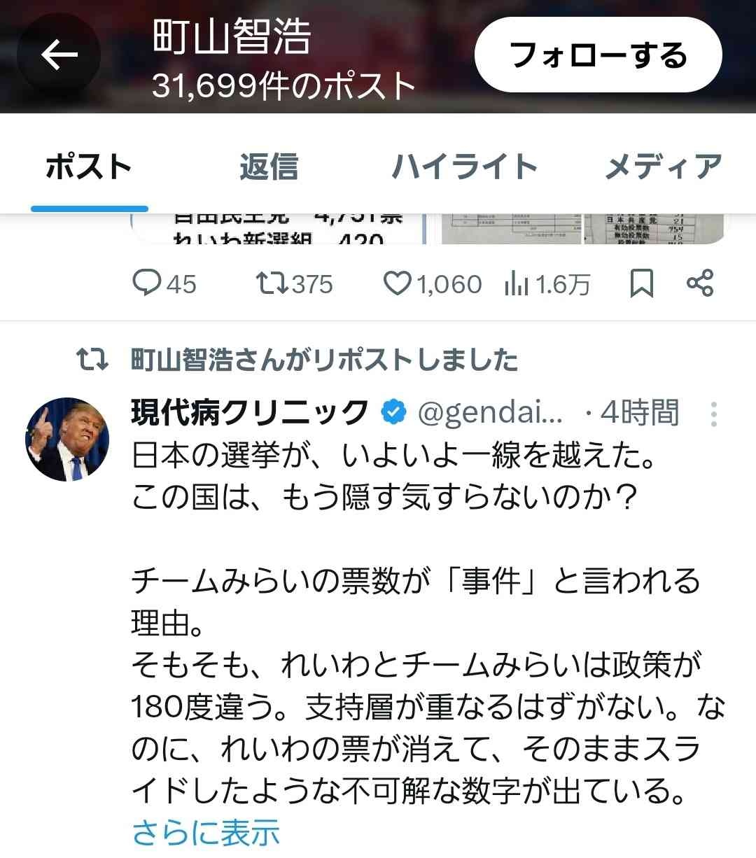 - 町山のアカウントチームみらい関連のリポストで埋まってて草