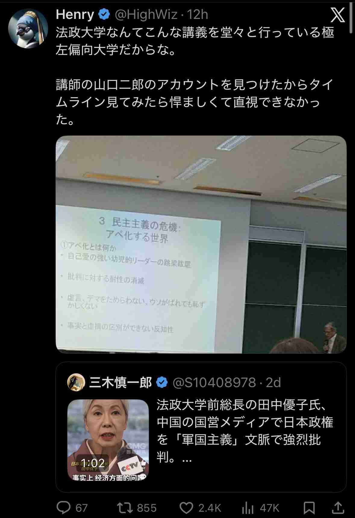 法政大学、左翼すぎてネトウヨに叩かれ始めるwww