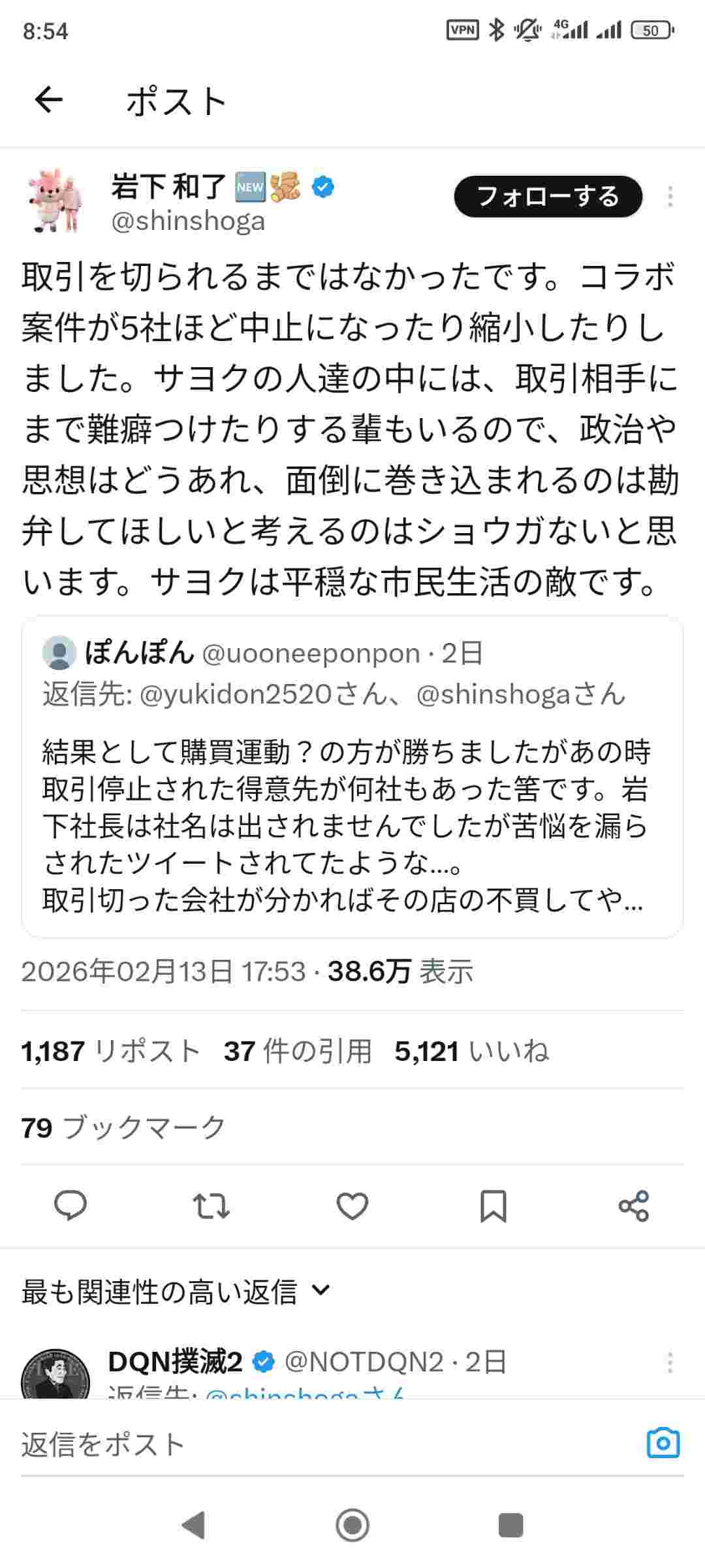 切った企業は賢明だね - 43 名前:ここからは表現の自由でイカせていただきます 投稿日時:2026/02/16(月) 09:05:31.819 ID:AExCCGYEX