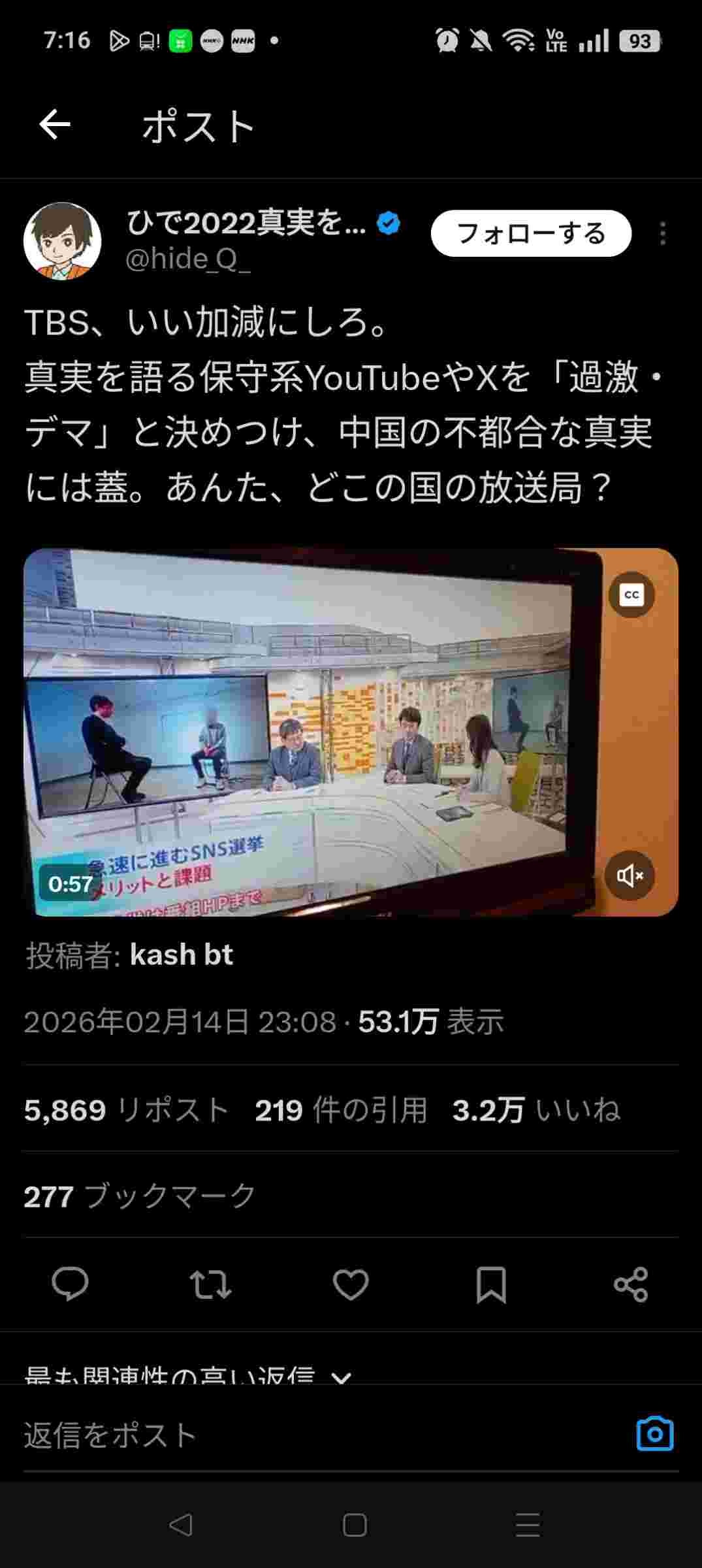 ネトウヨ、TBSにブチギレ。TBS「XやYouTubeの保守系のデマは…」ネトウヨ「デマ?真実しか言ってないのに?」