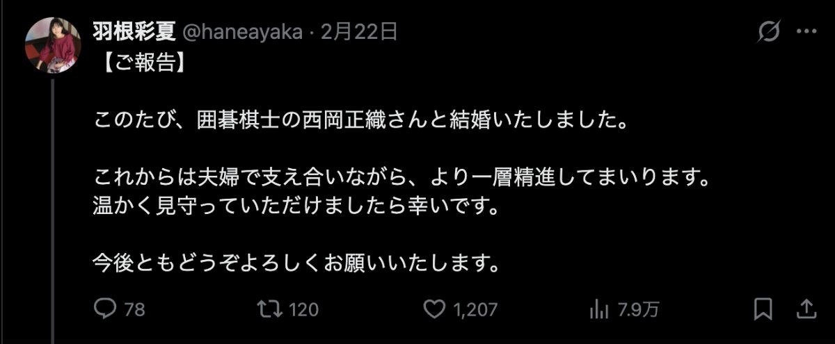 囲碁の女さん、結婚が早すぎるwww