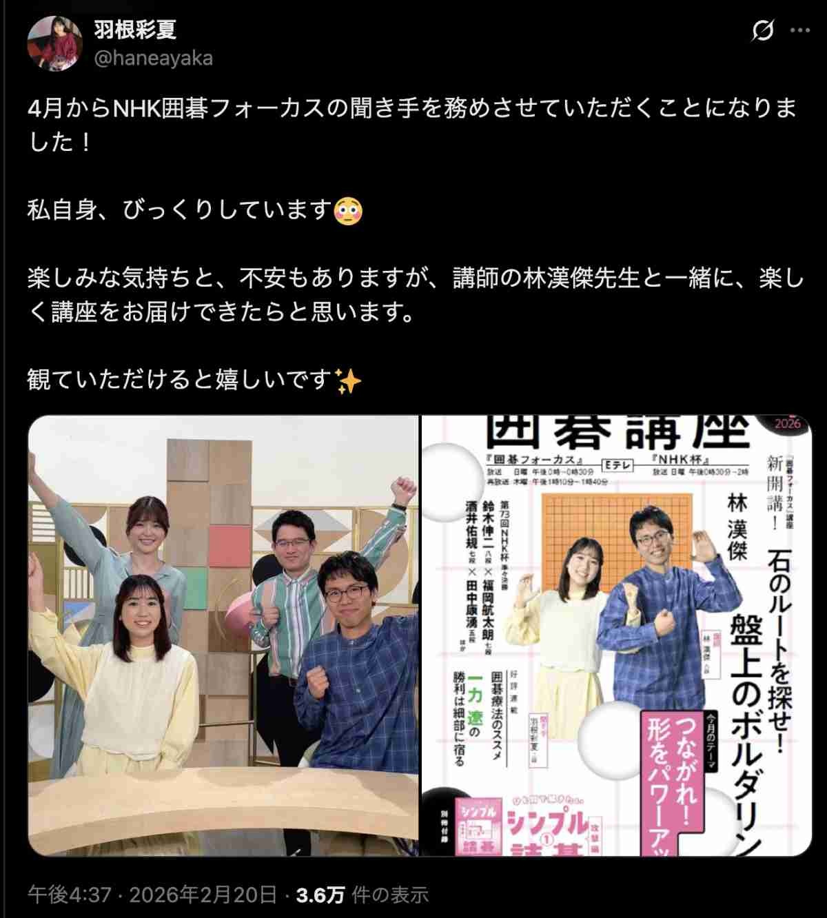 しかも羽根は時期NHKの囲碁講座の司会に抜擢されたばかり