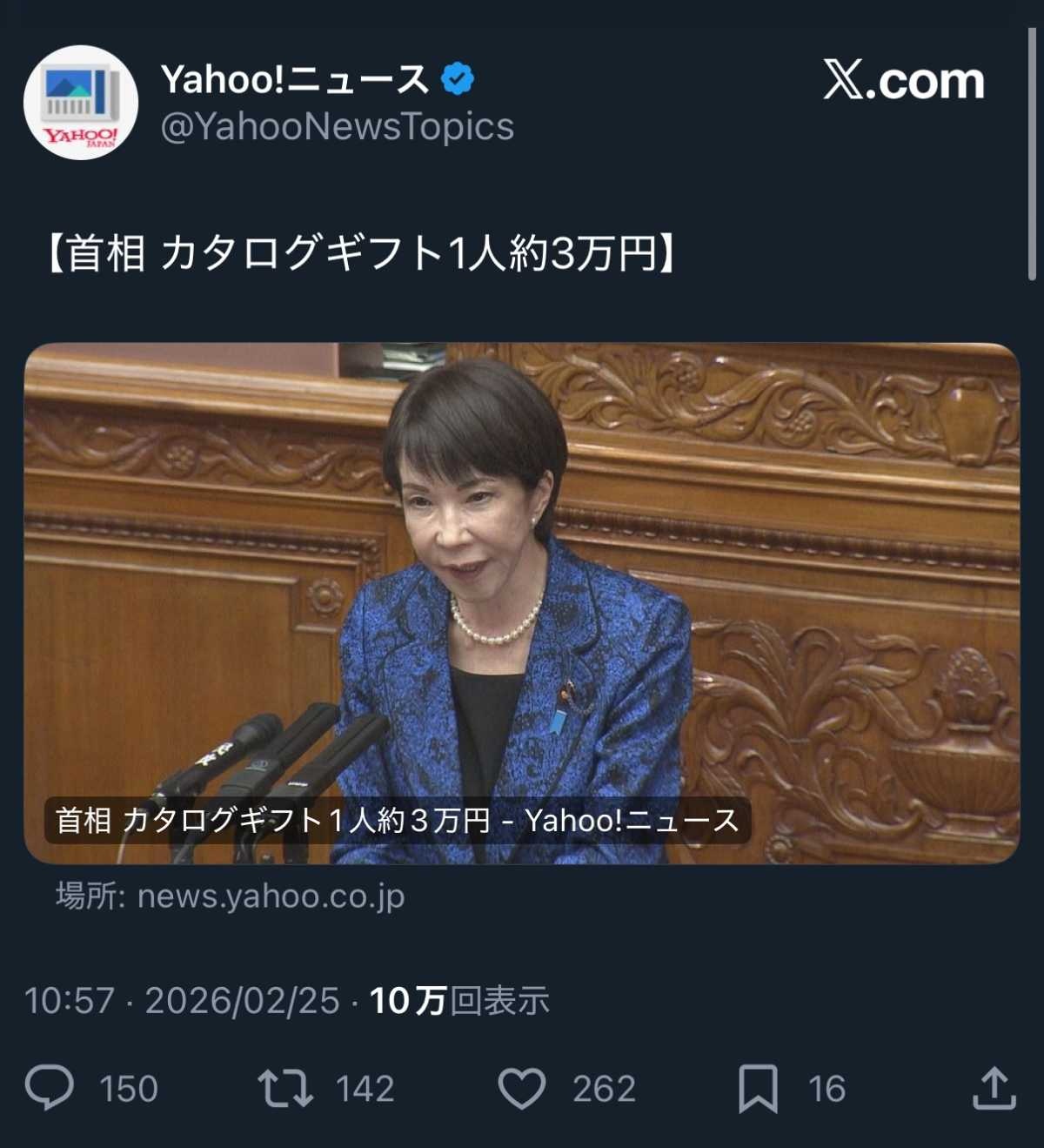 ニュース「高市早苗が税金で三万円を自民党議員に配っていたことが判明」ネトウヨ「何が問題なの?😡」