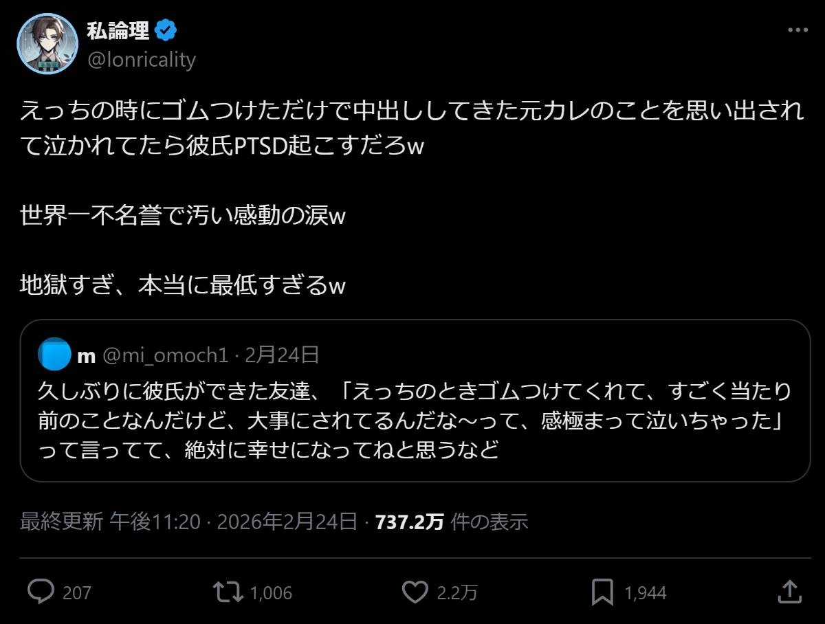 22 名前:ここからは表現の自由でイカせていただきます 投稿日時:2026/02/27(金) 12:40:41.270 ID:oVwwnLLhW