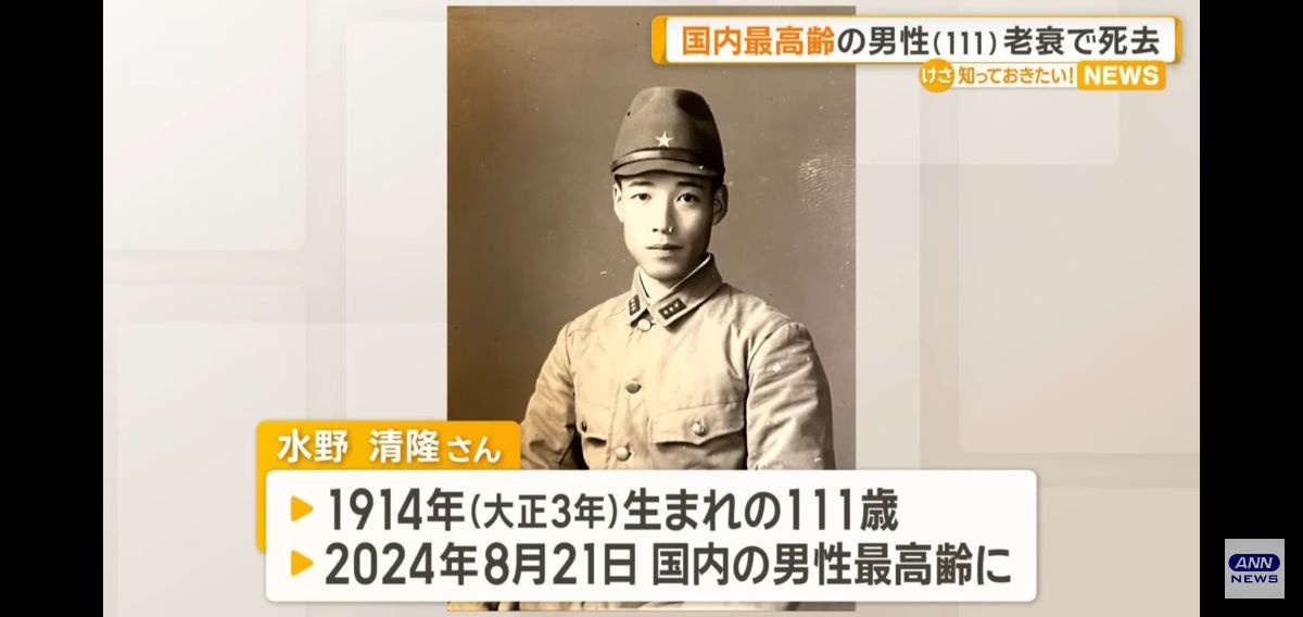 水野さんは1914年(大正3年)生まれ。県内では最高齢で、男性としては国内最高齢でした。