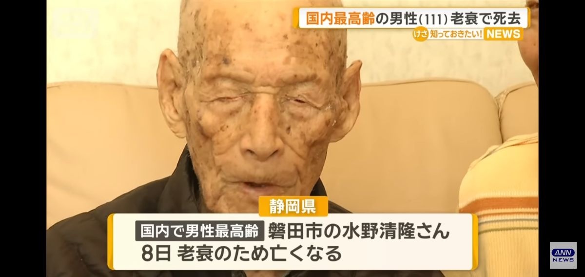 静岡県や磐田市によりますと、磐田市に住む水野清隆さんは2月8日の午前9時半過ぎに老衰で亡くなったということです。