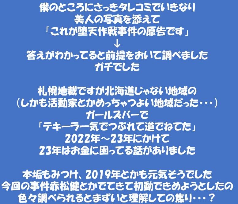 - 被害者女性はガールズバーで働いてテキーラ飲んで外で潰れているような女性です!!!