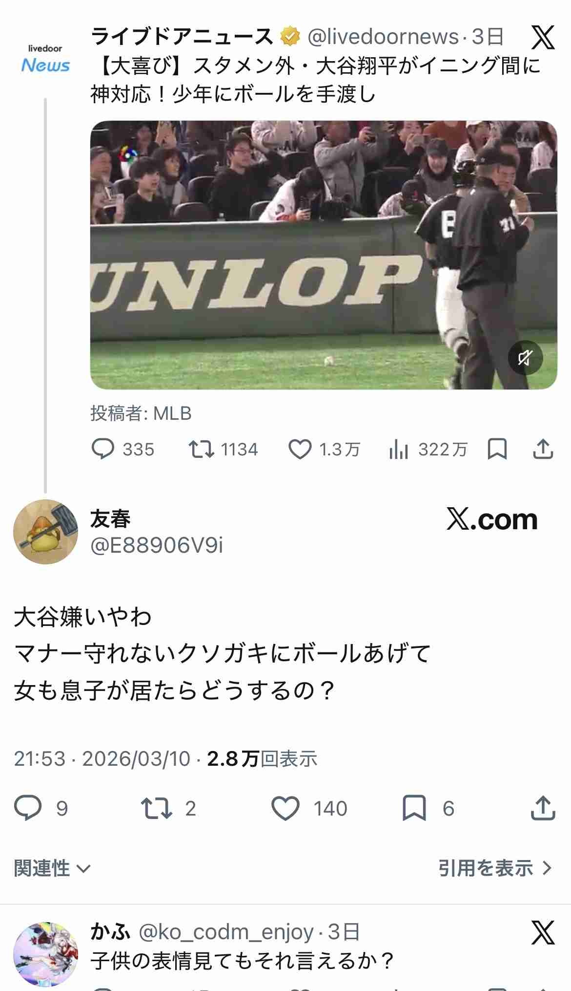 - 大谷はそんなよく考えずに「お、子供おるやんボールあげたろ!」って思っただけだろう