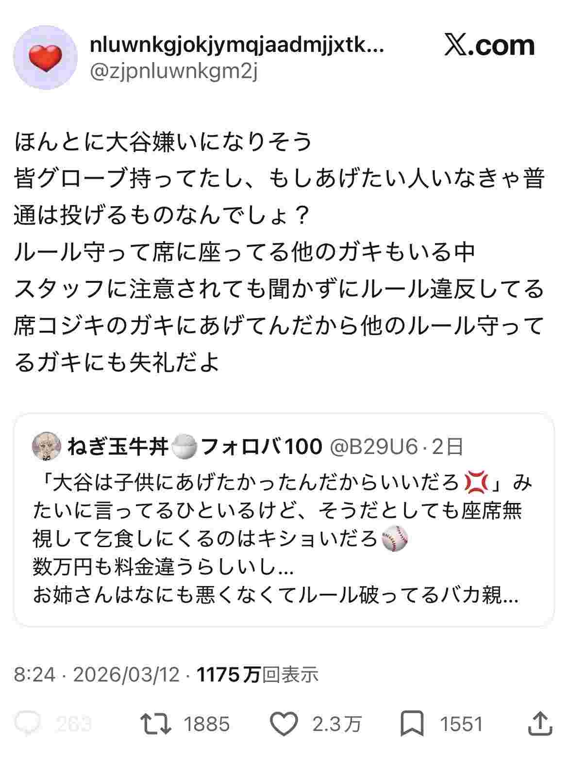- 観客席のルールなんぞ大谷が知るわけないやろ