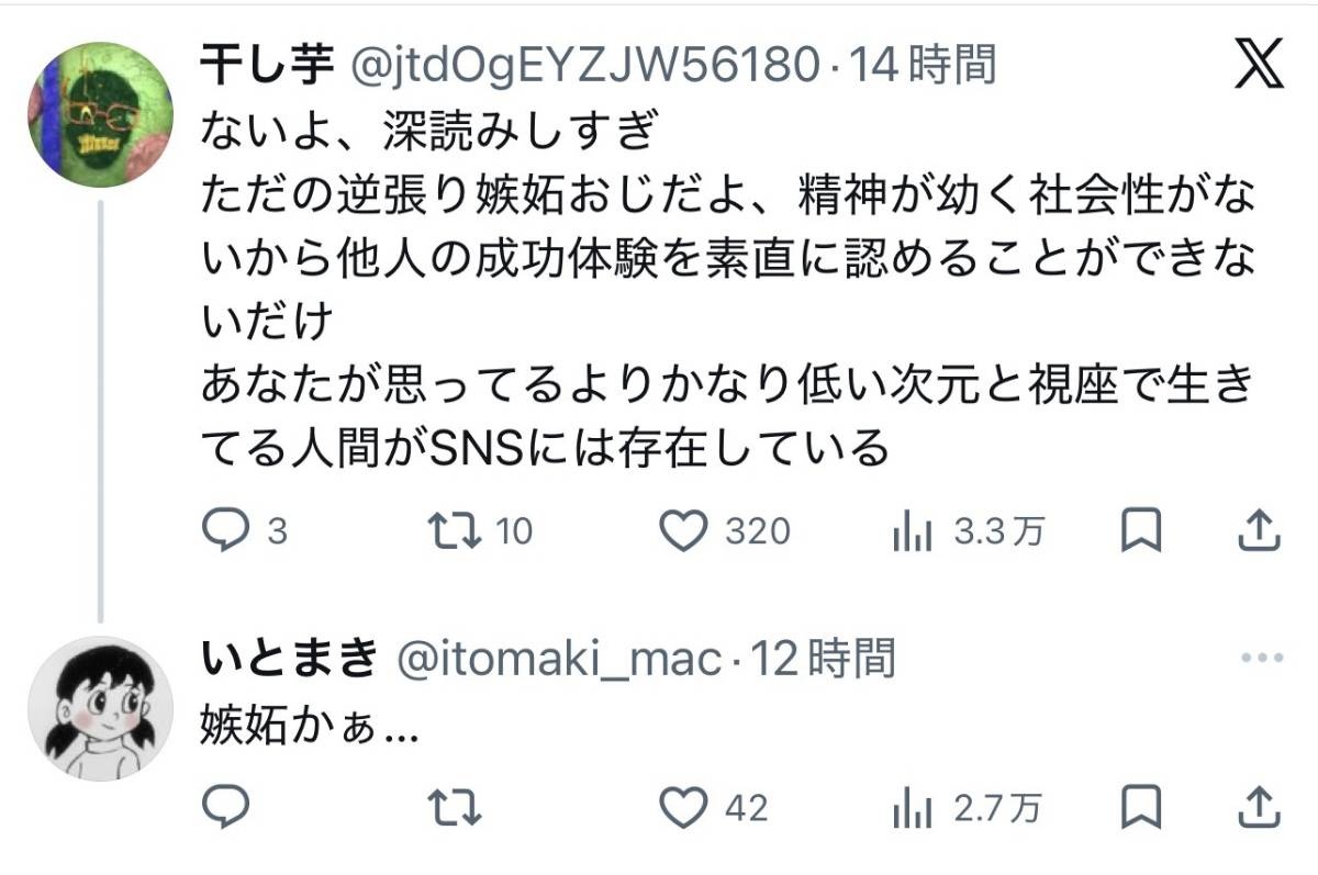 逆張り嫉妬おじさんわらわらで草