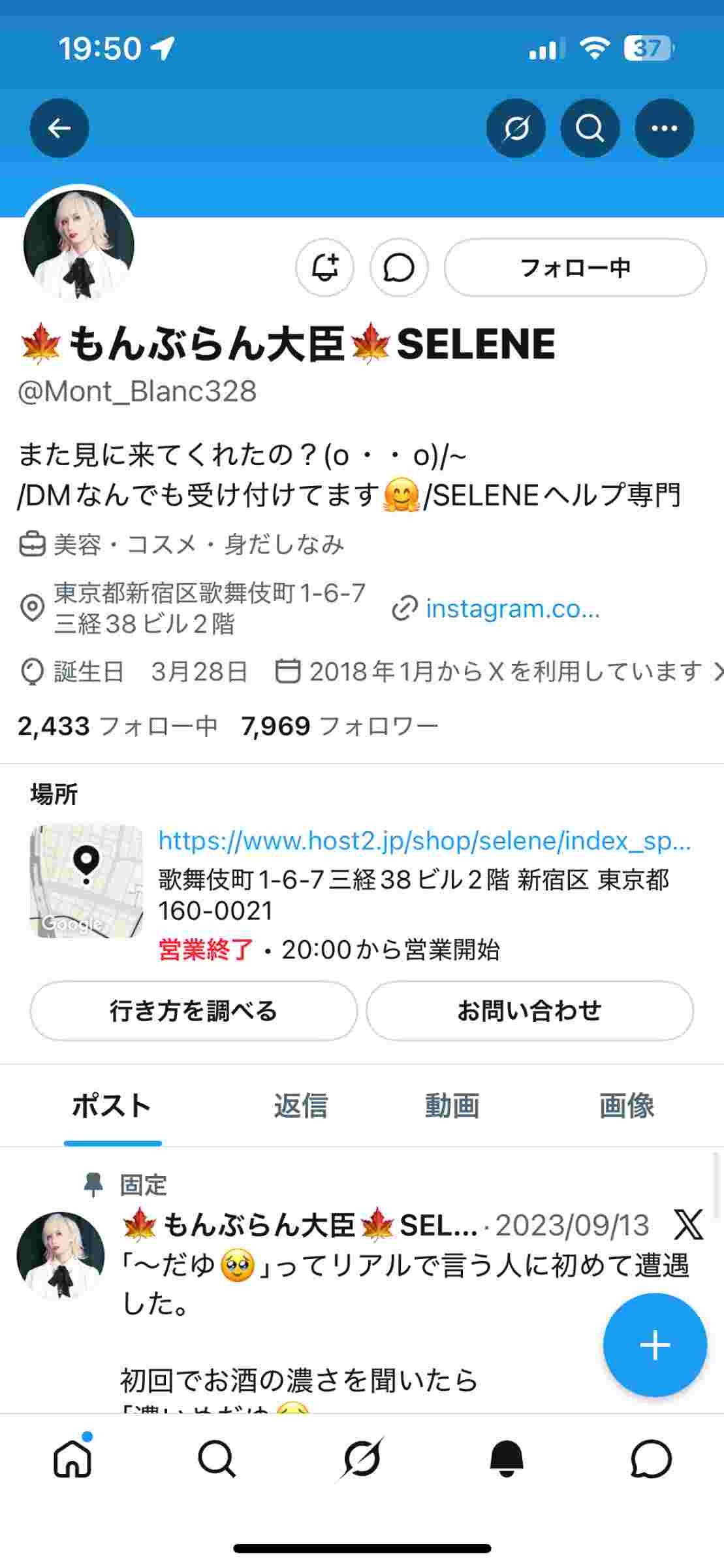 プロフ見た感じ歌舞伎町でお店やってるんやな
