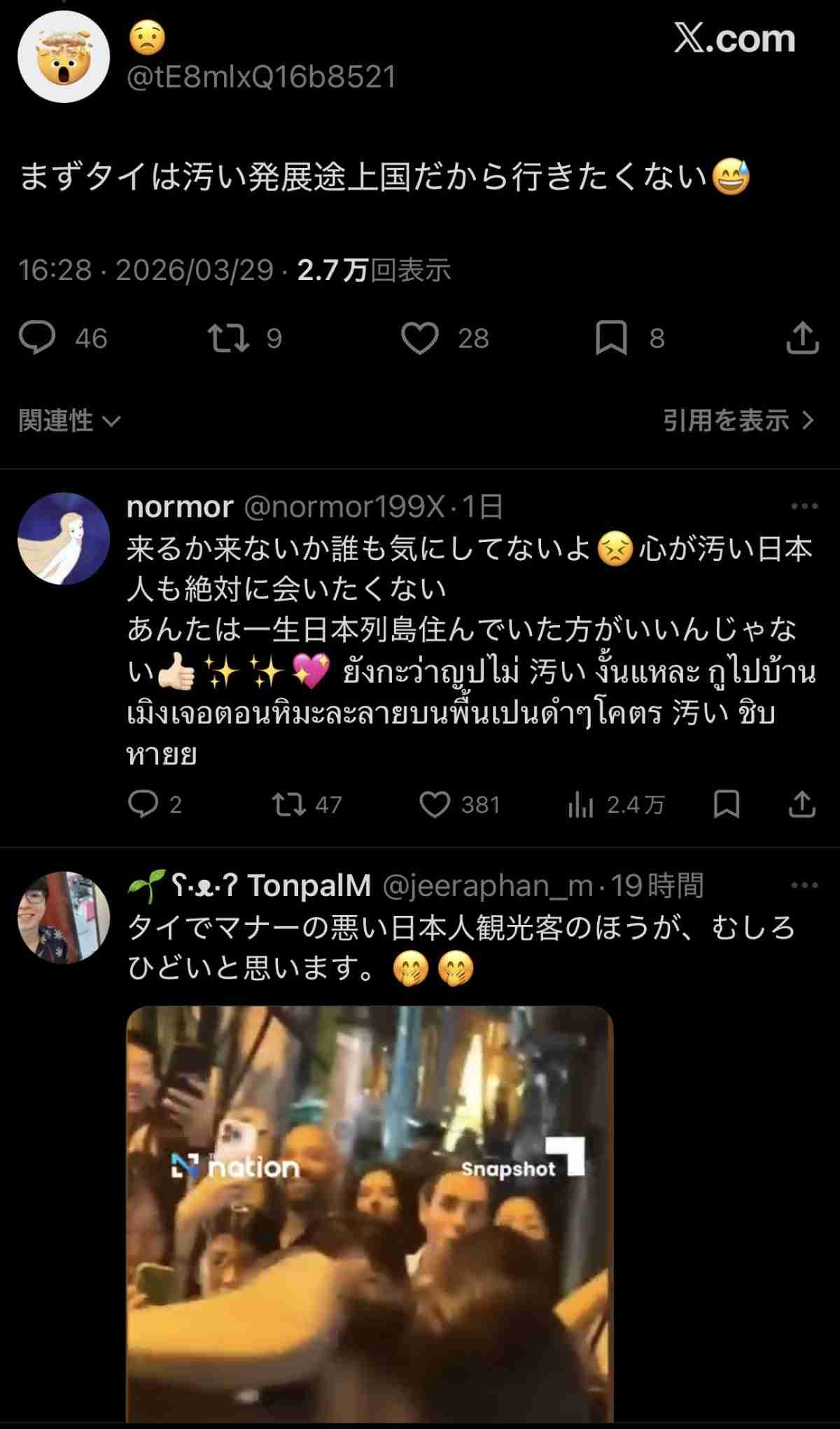 だから他国の人のおすすめにも乗りやすい - 81 名前:ここからは表現の自由でイカせていただきます 投稿日時:2026/03/31(火) 12:32:21.450 ID:KT9xBG3Ty