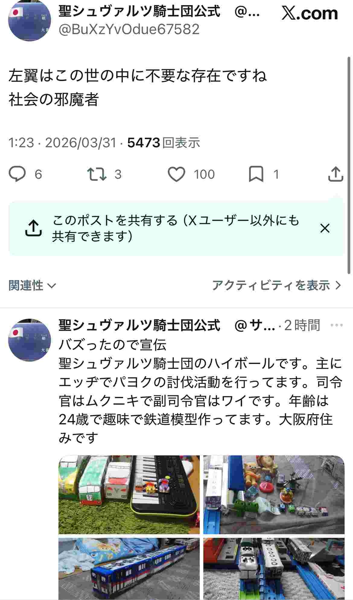 - 19 名前:ここからは表現の自由でイカせていただきます 投稿日時:2026/03/31(火) 18:09:26.525 ID:Q4js4uLZg