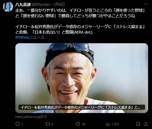 MLBはデータ集まってから勝負とか言ってるアホ沢山いるけど、それNPBの時点からデータでやってたらNPBで克服していて然るべきもんなんやでっていう