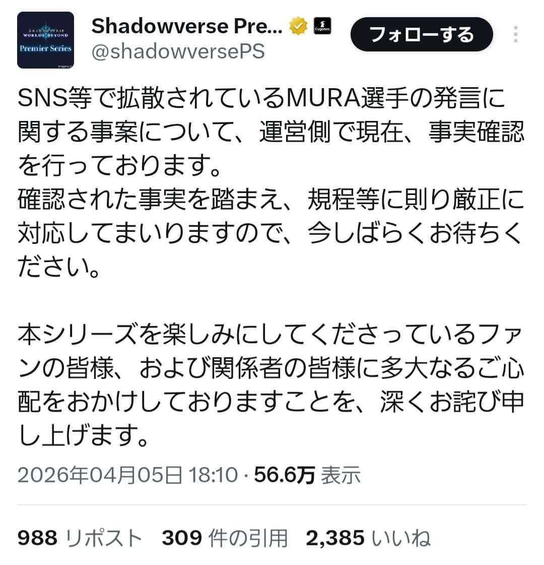 シャドウバース運営、お気持ち表明www