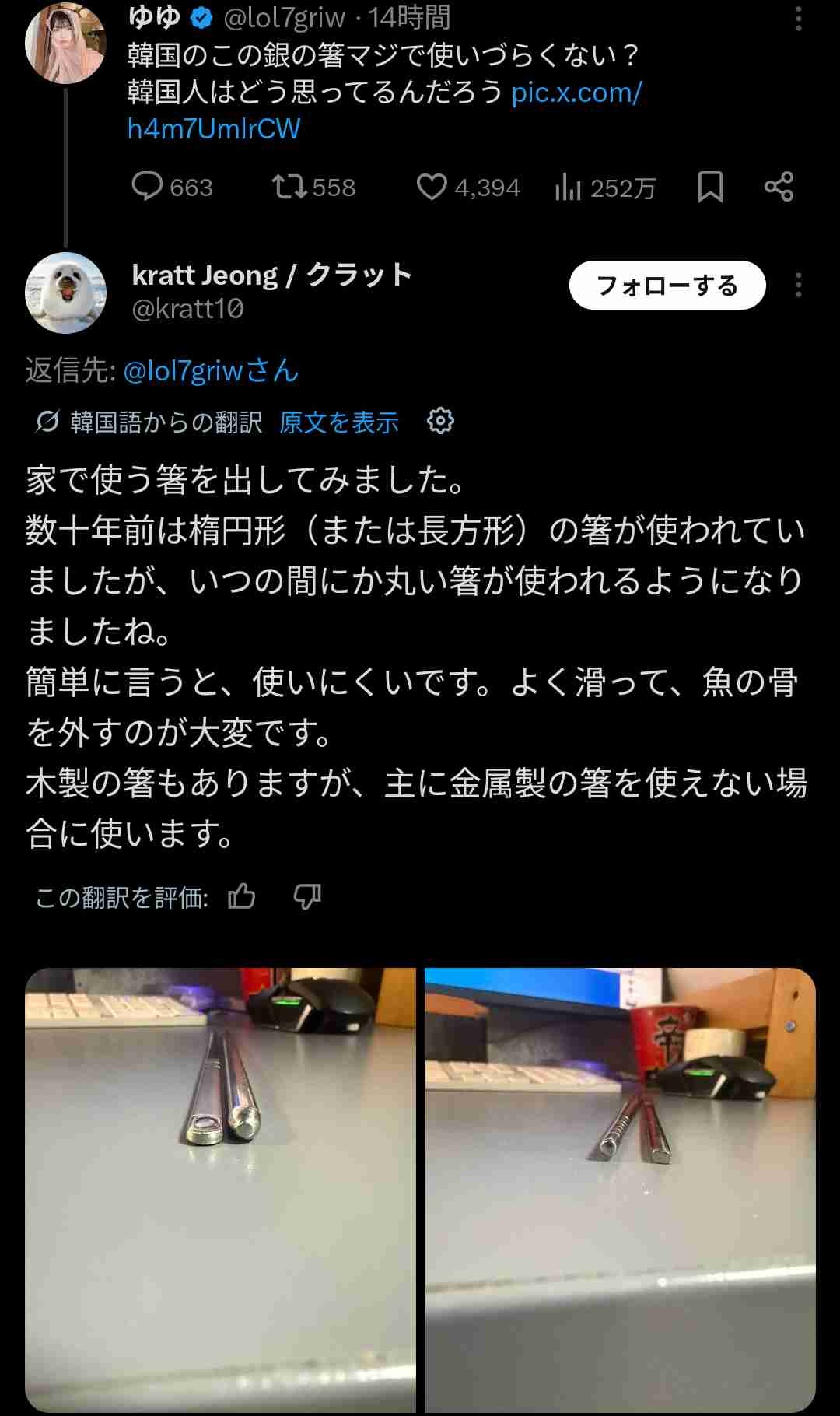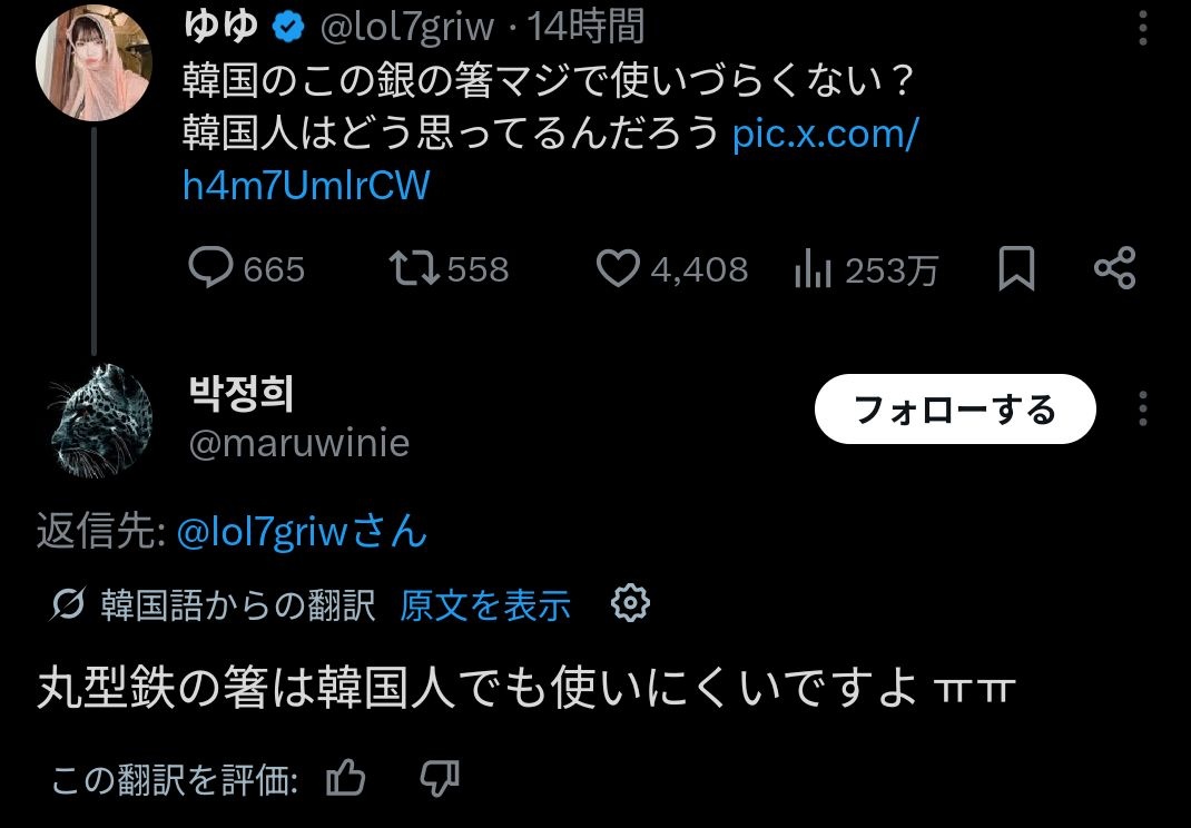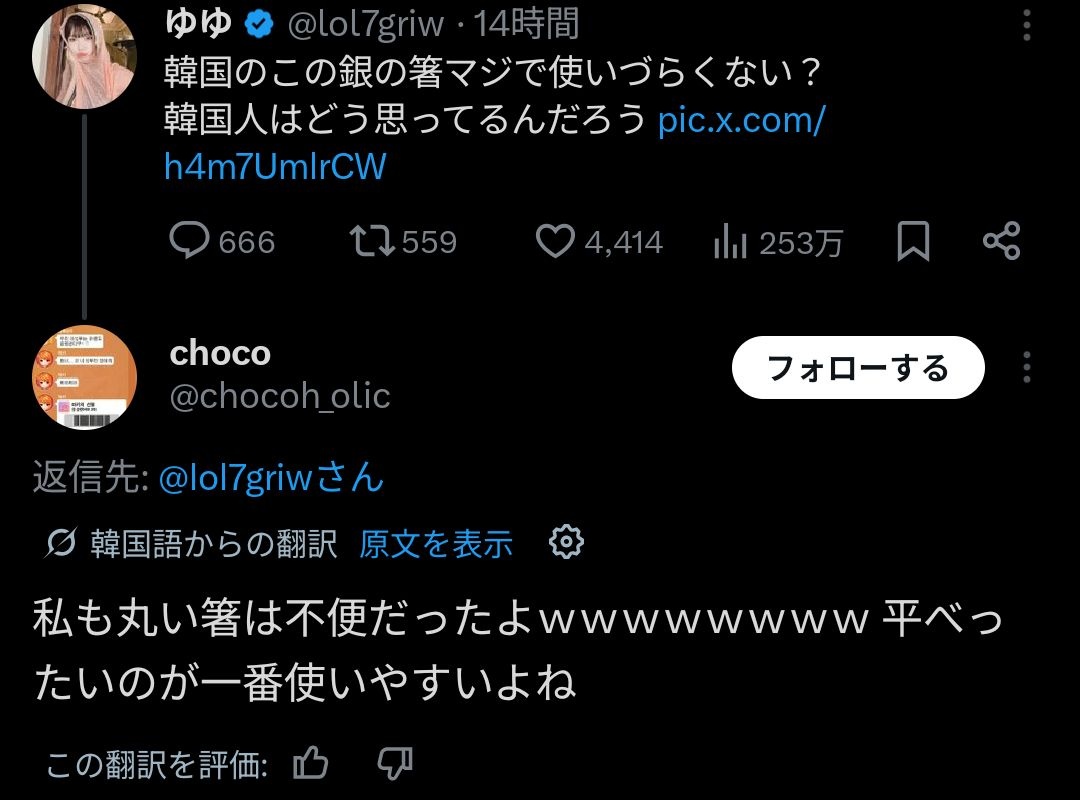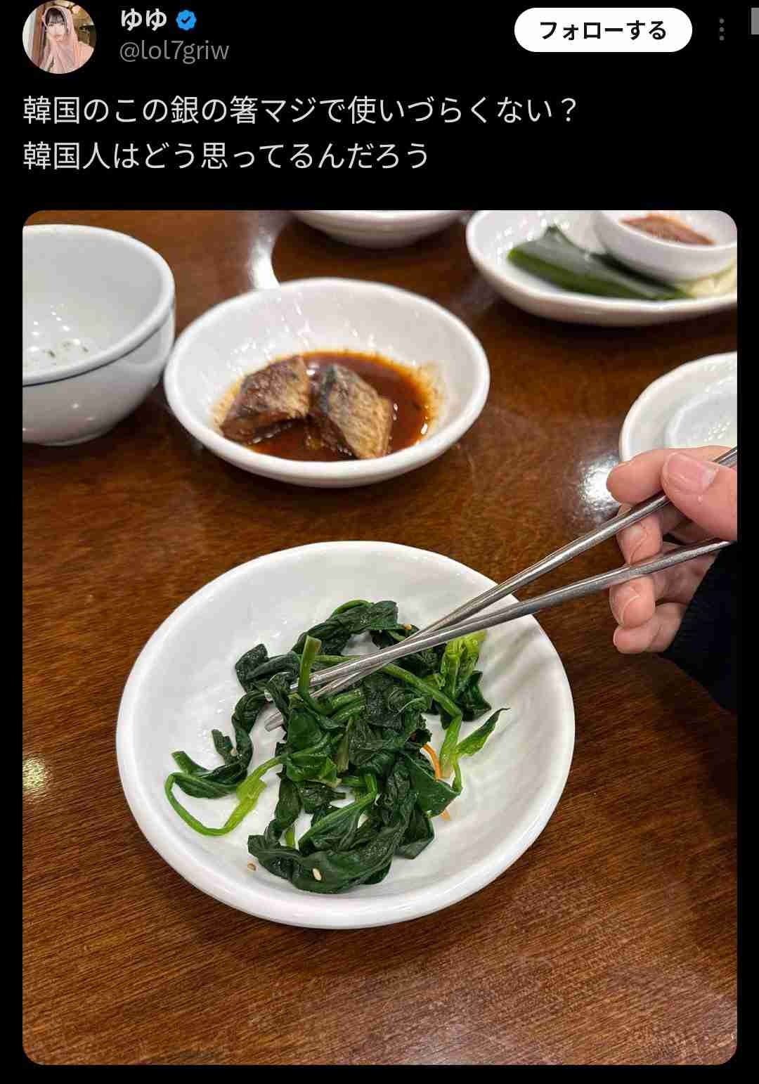 日本女さん「韓国の銀の箸使いづらくない?😅」韓国人さん「…😡」