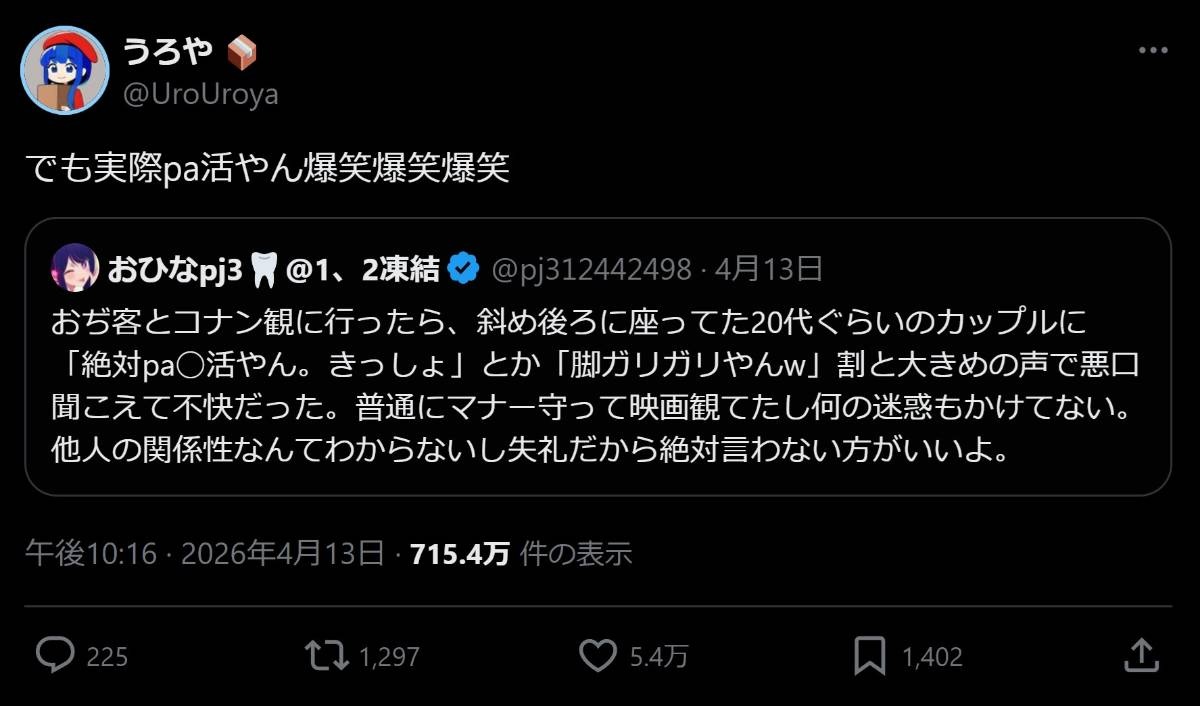 いやガチならハイスペすぎやろ - 58 名前:ここからは表現の自由でイカせていただきます 投稿日時:2026/04/15(水) 10:59:35.720 ID:ddo6fu1QZ