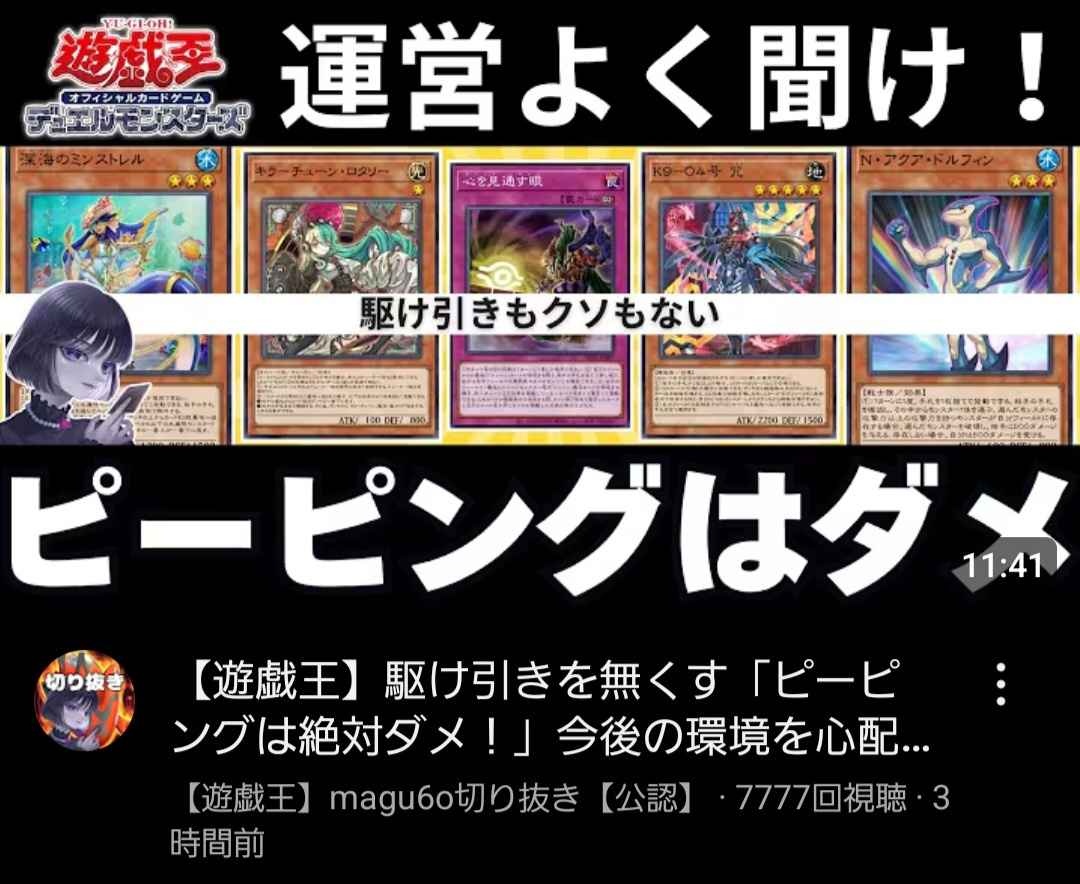 遊戯王界隈、一斉にピーピングを批判し始めるwww