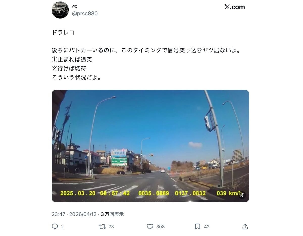 - 直前が見たいわパトカーこいつ捕まえようとしてる様にしか見えないし