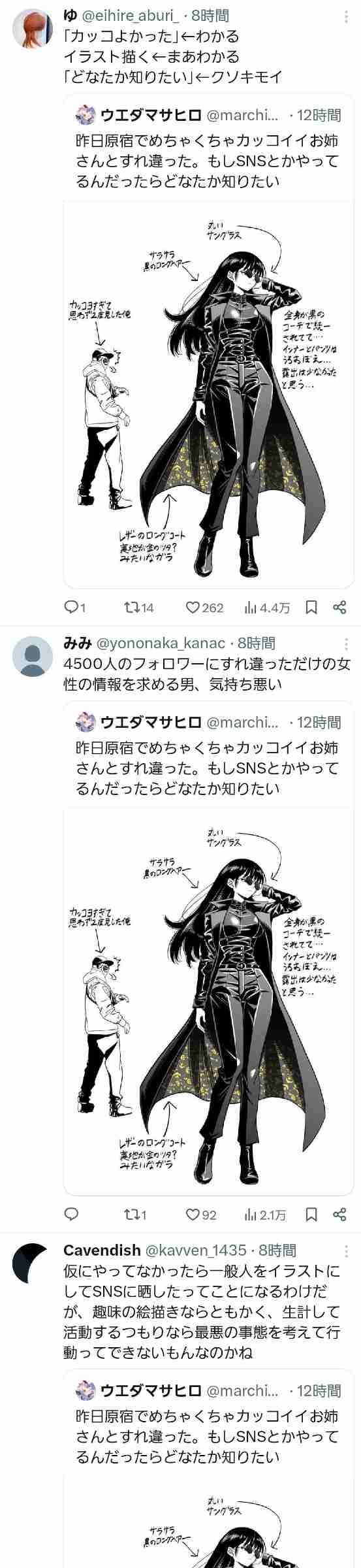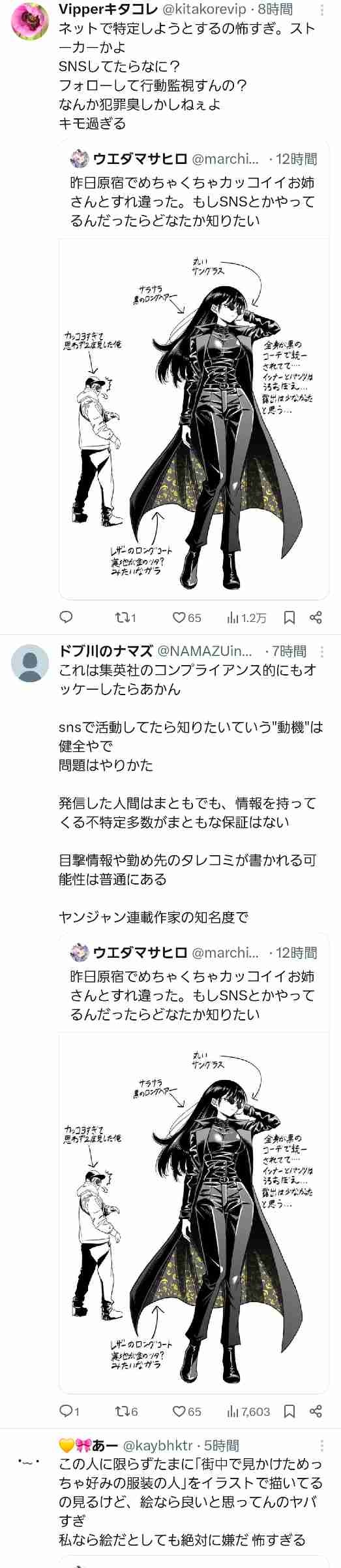 女性からしたら知らんとこでイラストにされて情報募集されてるの恐怖でしかないやろ