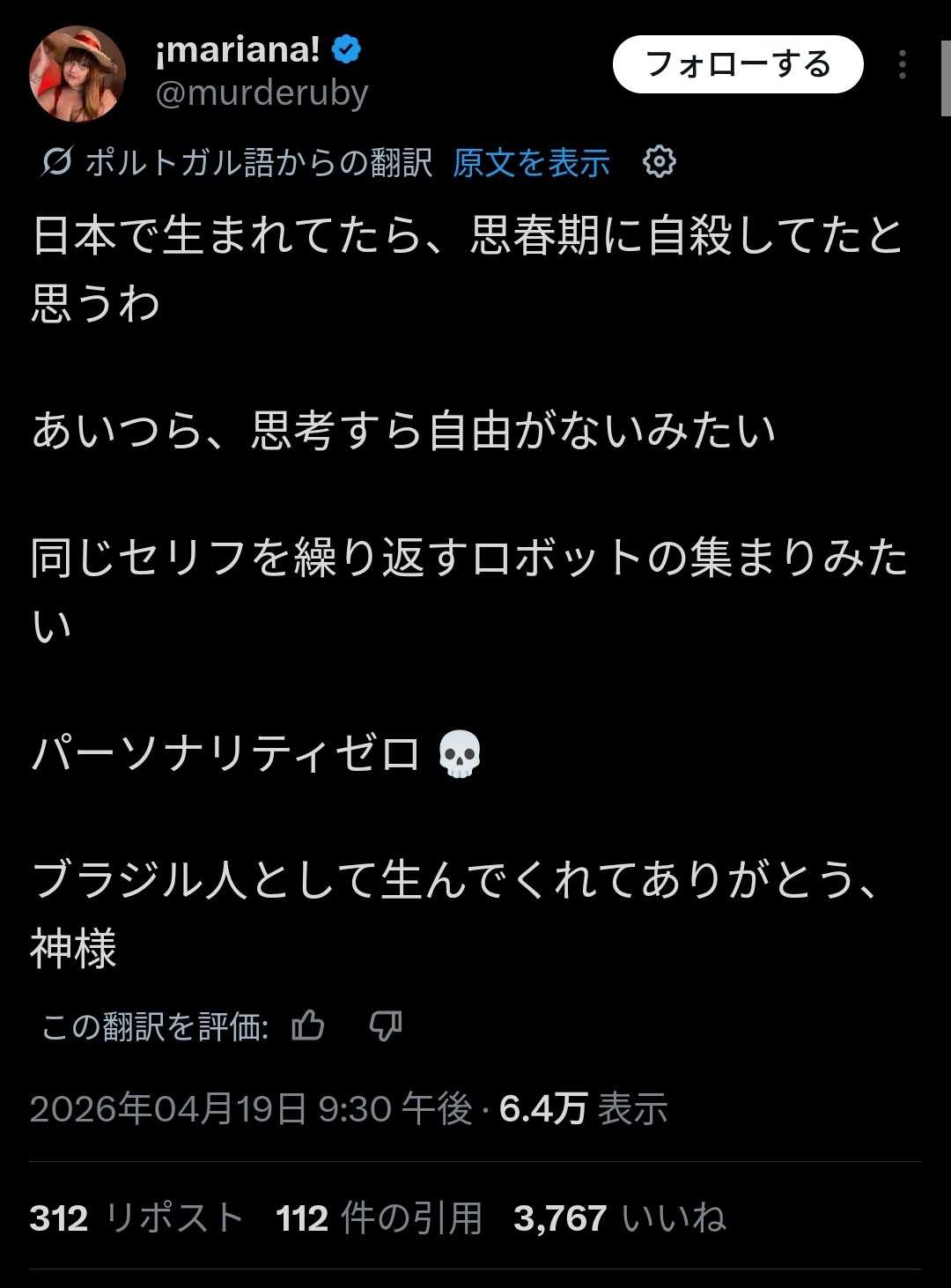 - ブラジルなら殺されてる